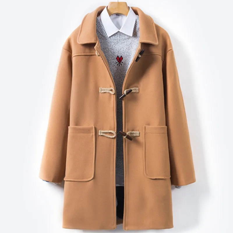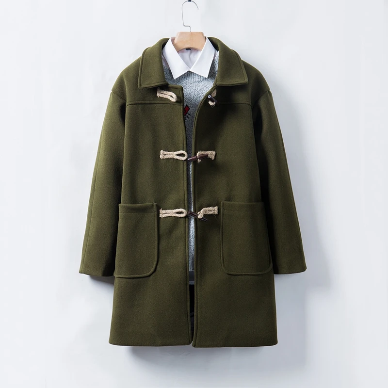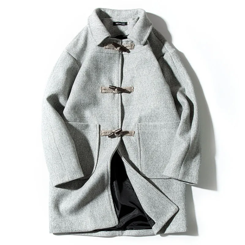 Новинка Осень-зима 2022, модное мужское повседневное шерстяное пальто из бутикамужской длинный Тренч с пряжкой из рога, Ветровка из смешанного материала