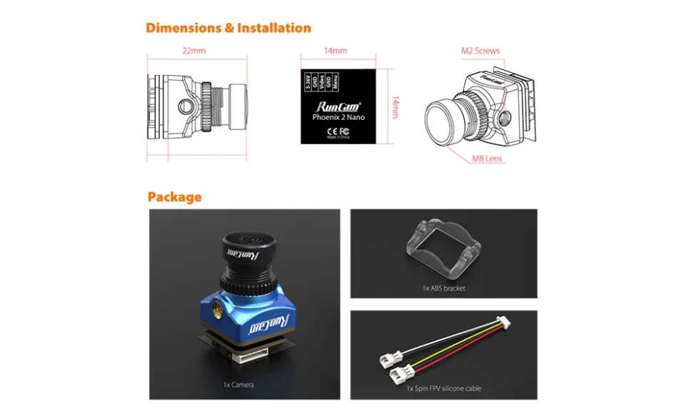 14 мм * 14 мм RunCam Phoenix 2 Nano 12 "CMOS-сенсор 1000TVL 2,1 мм ...
