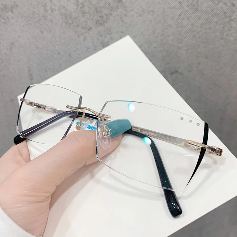 Новые модные очки для чтения, Женские оправы без оправы с бриллиант...