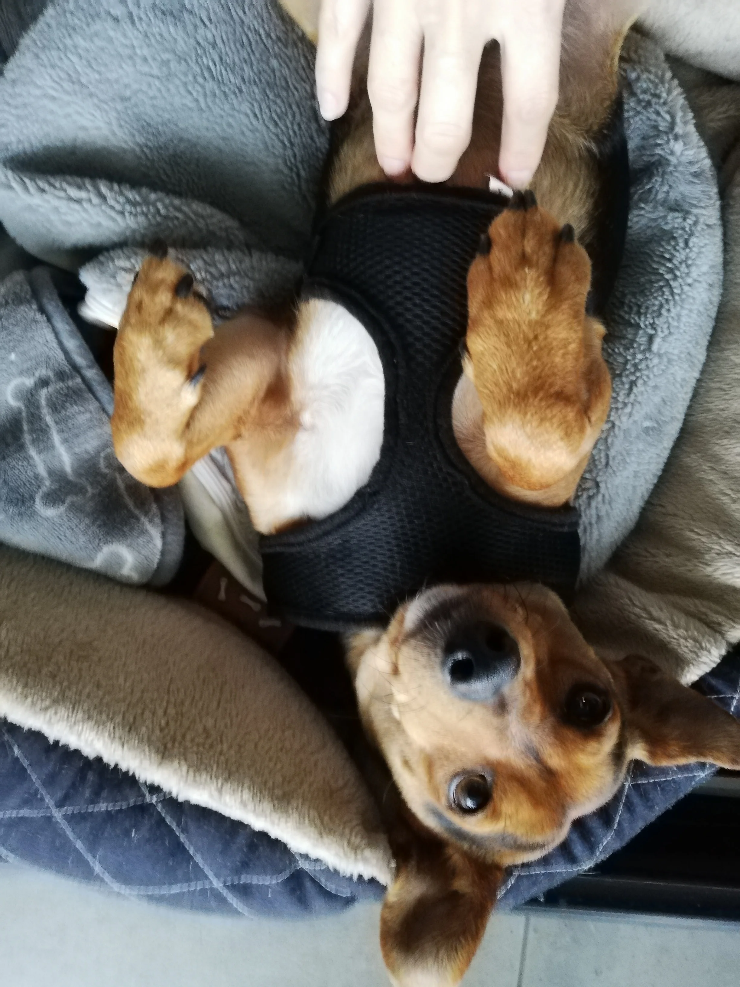 Très bien. Mon chien est noir sur le dessus, du coup on ne voit pas bien sur la photo, mais ça lui va. C'est un mélange de pinscher et de jack russell = 6kg. Je me suis fiée au tableau des tailles et j'ai bien fait. Le harnais est léger et correspond bien à un petit chien (pas beaucoup de force). Envoi rapide. Je recommande.