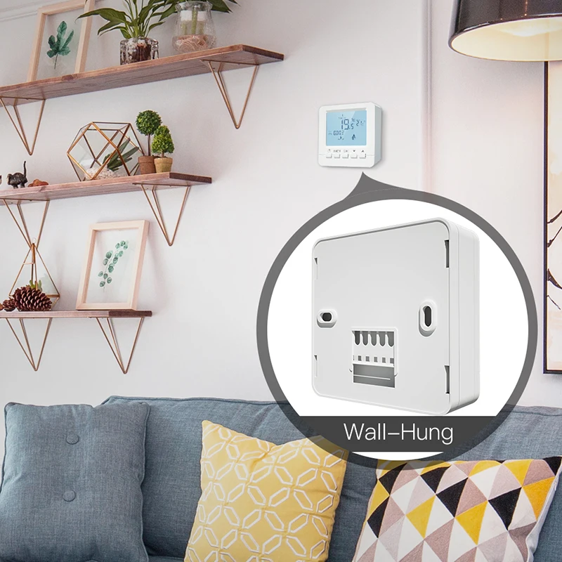 Особенности продукта:1. Цифровой термостат для газового котла и водного напольного отопления: Термостат газового котла с ЖК-цифровым дисплеем. Он состоит из двух секций аккумуляторов AA и контактной емкости 5A. Он используется для управления котлами для запуска или остановки работы для регулировки температуры. Термостат определяет температуру в помещении, когда фактическая температура в помещении ниже установленной температуры, термостат контролирует бойлер, чтобы начать работу. Затем термостат контролирует бойлер, чтобы остановить работу, когда фактическая температура в помещении выше вашей установленной температуры.2. Программируемое расписание с еженедельным выбором программ: поддерживает ручную настройку 5 + 2,6 + 1 и 7 дней еженедельного расписания для опции, предоставляя вам максимальное удобство для различных ситуаций. Память данных при выключении питания.3. Праздничный режим с обратным отсчетом: праздничные дни и температура могут быть настроены для работы в режиме обратного отсчета и позволяют наслаждаться более комфортной температурой в отпуске.4. Белая подсветка с замком для детей: простота в эксплуатации даже в ночное время. Внесите вклад в защиту окружающей среды, экономя энергию с 2 батареями АА.5. Легко читаемый цифровой дисплей с температурой Цельсия.Параметр:Питание: 2 * батарейки типа ААДисплей Точность: ± 0,5 ℃/1 °FДисплей точность: 0,5 ℃ или 1 °FДатчик зонда: NTC(10k)1%Контактная Емкость: 5AРабочая температура окружающей среды: 1 ~ 70 °C/32 ~ 158 °FДиапазон регулировки температуры: 5 ~ 35 °C/41 ~ 95 °FДиапазон отображения температуры: 1 ~ 40 °C/32 ~ 99 °FРазмер (мм):86*86 мм/3,39*3,39 дюймаПосылка:1 x программируемый термостат1 x Руководство пользователя2 винта