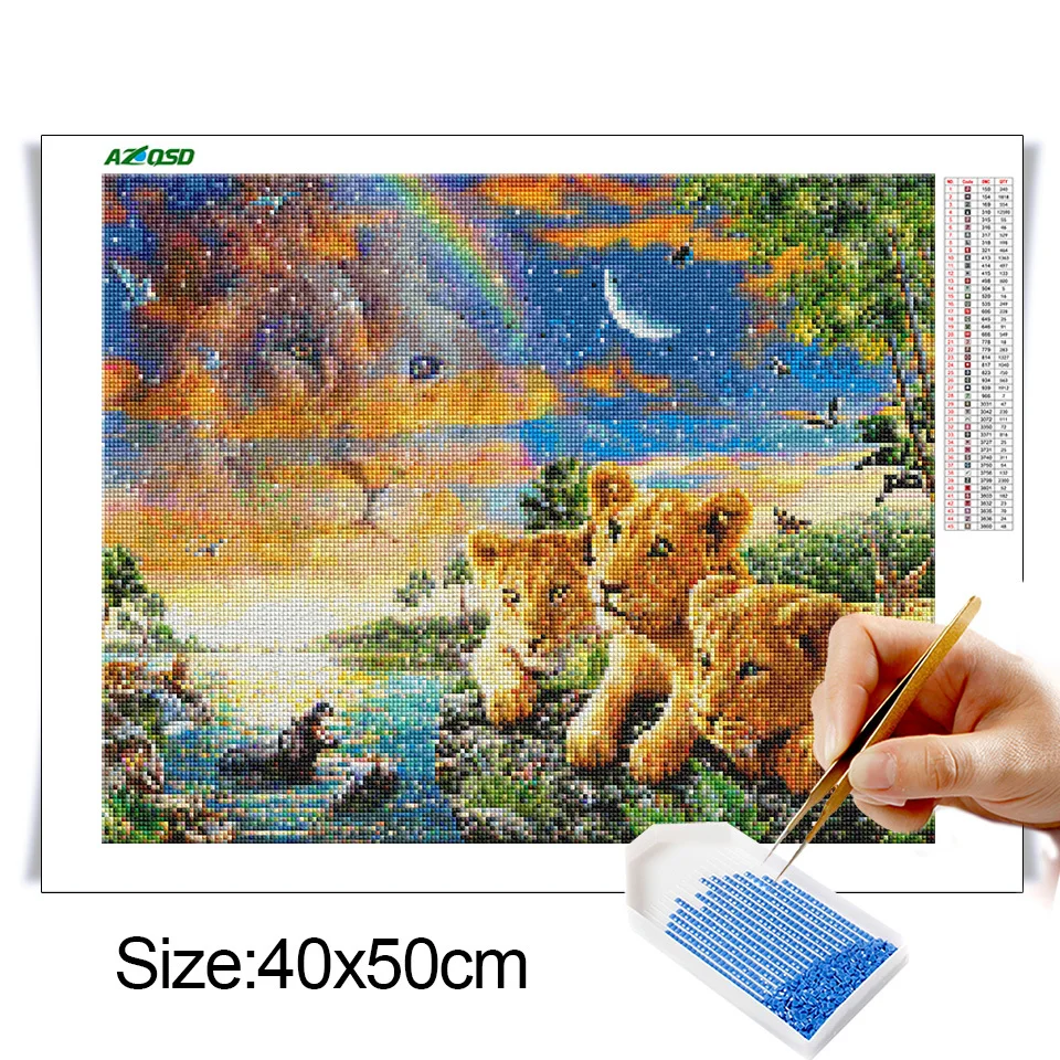 AZQSD 5D DIY Алмазная вышивка Лев Радужная мозаика Новое поступление Декор для дома алмазная живопись животные ручная работа полный набор
