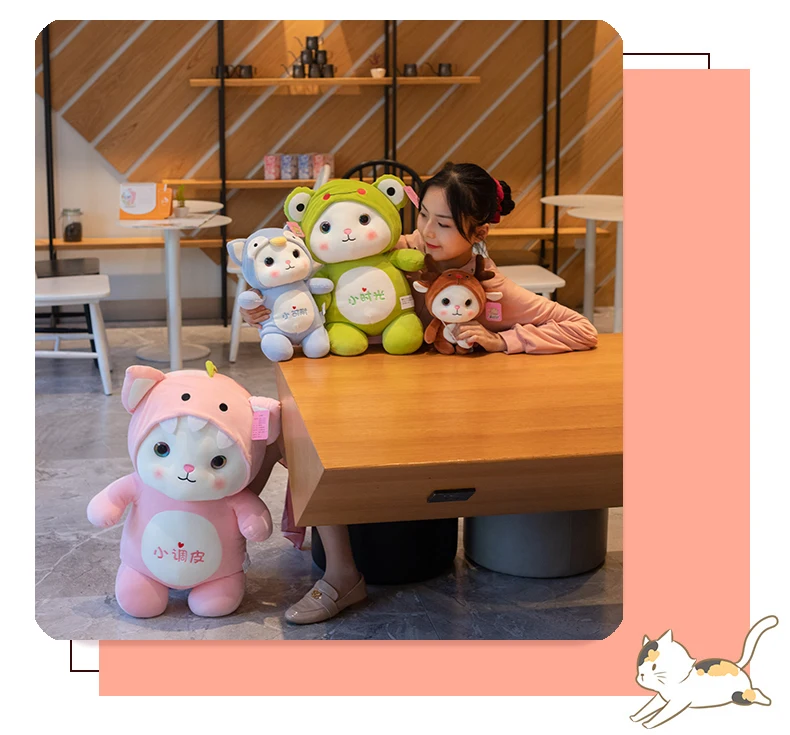 Лидер продаж, мультяшный Кот, мягкие плюшевые игрушки, кавайная мягкая кукла, наряд, жираф, лягушка, пингвин, динозавр, Детская плюшевая кукла, подарки для девочек