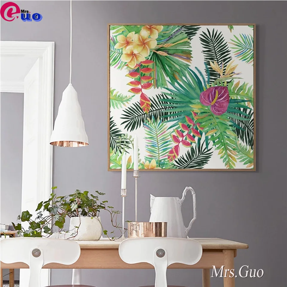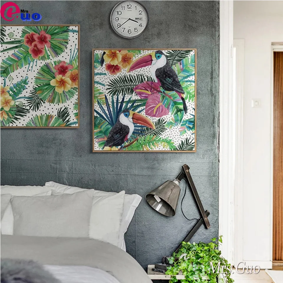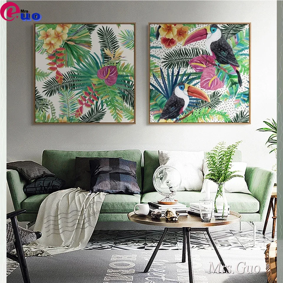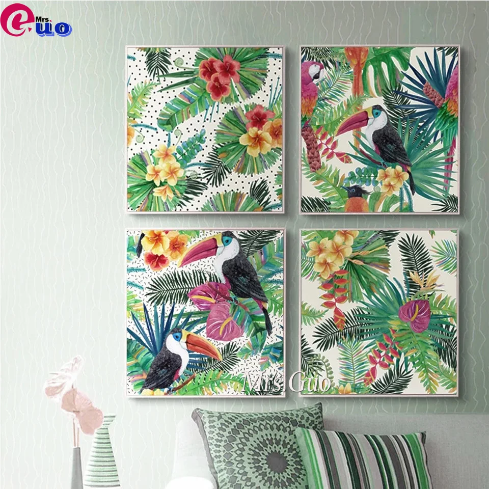 5D DIY Алмазная картина тропический лес акварельные растения Цветок Птица натуральный стиль полный квадратный круглый стразы домашний декор