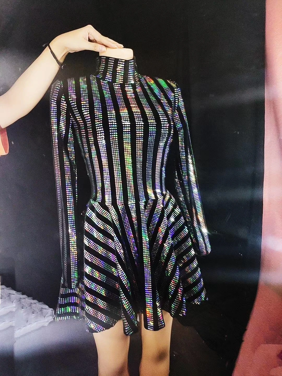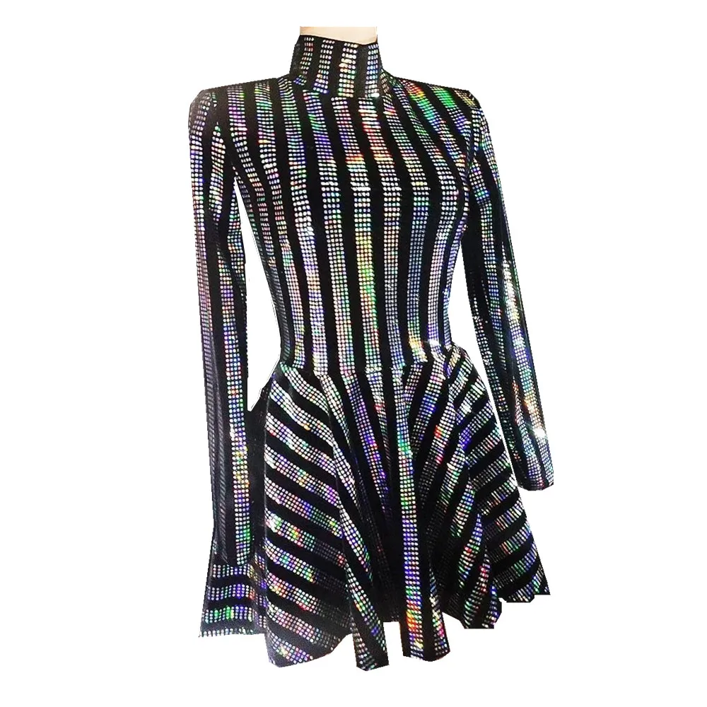 Блестящее серебряное Клубное платье с блестками, женское эластичное коктейльное короткое платье-трапеция для выпускного вечера, платье для латинских танцев и сцены, одежда для выступлений