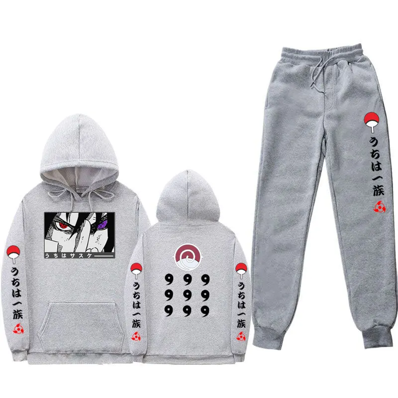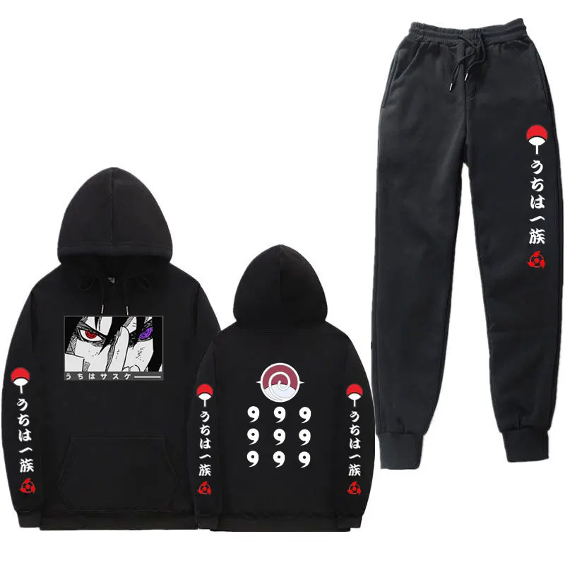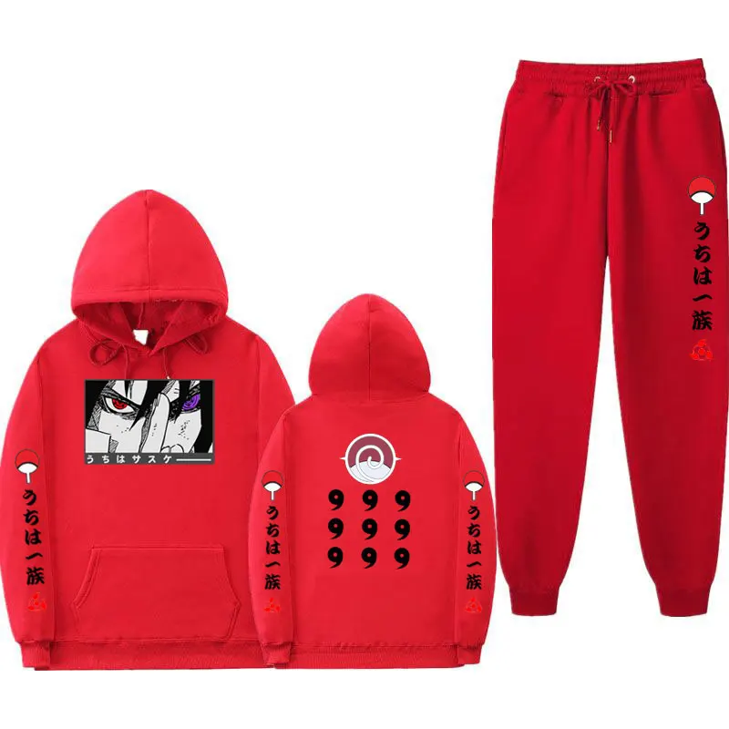 Мужскойженский модный костюм Харадзюку из 2 предметов Uchiha Madara осенне-зимние флисовые толстовки свитшот + спортивные брюки