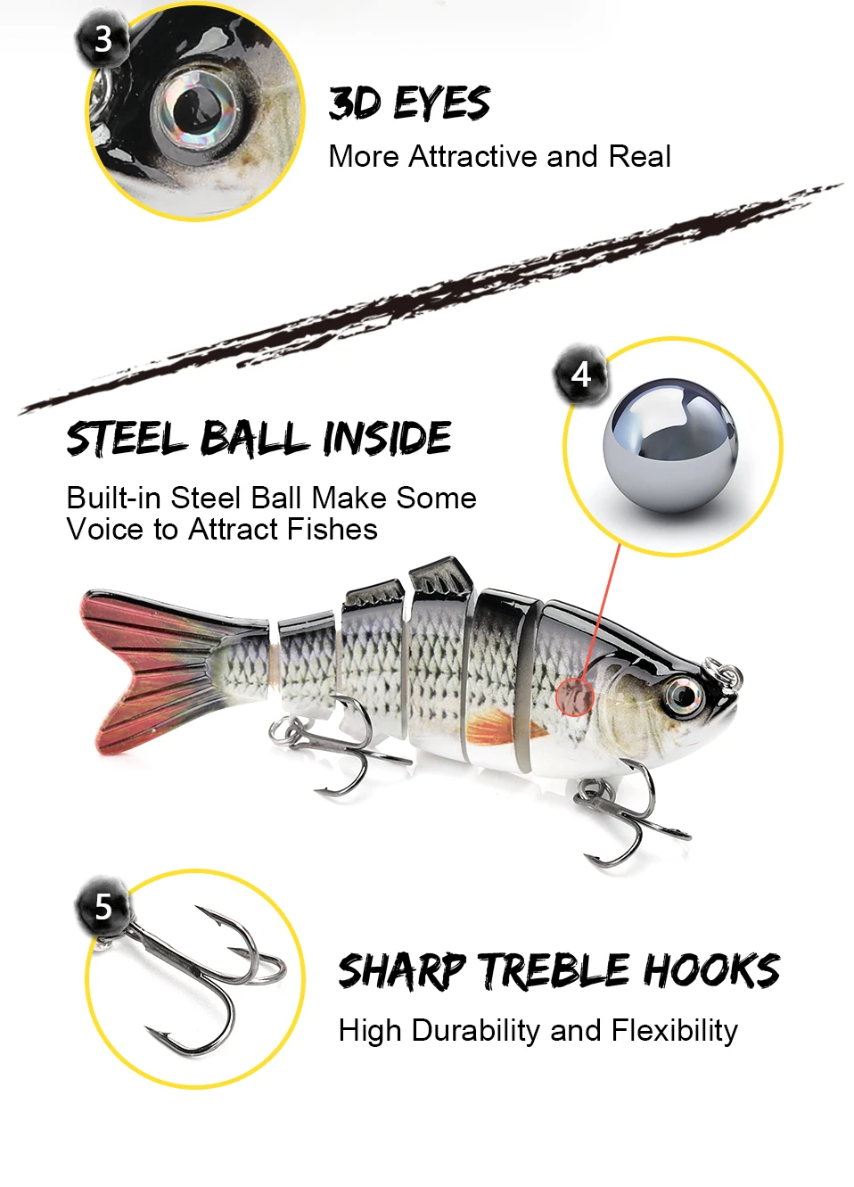 O produto é de boa qualidade e possui um nado muito realístico e atrativo, porém recomendo substituir os anzóis por outros mais fortes para suportar os ataques de peixes maiores. Estou muito satisfeito!