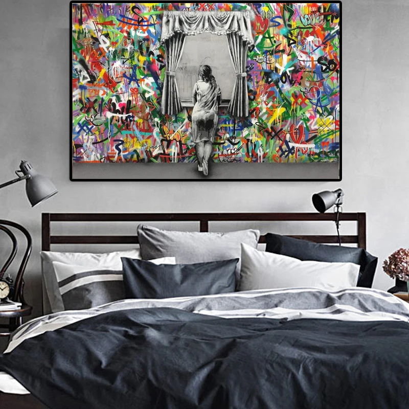 Граффити искусство стены картины для гостиной Бэнкси сцены девушка улица холст картины настенные художественные плакаты печатные дома Декор