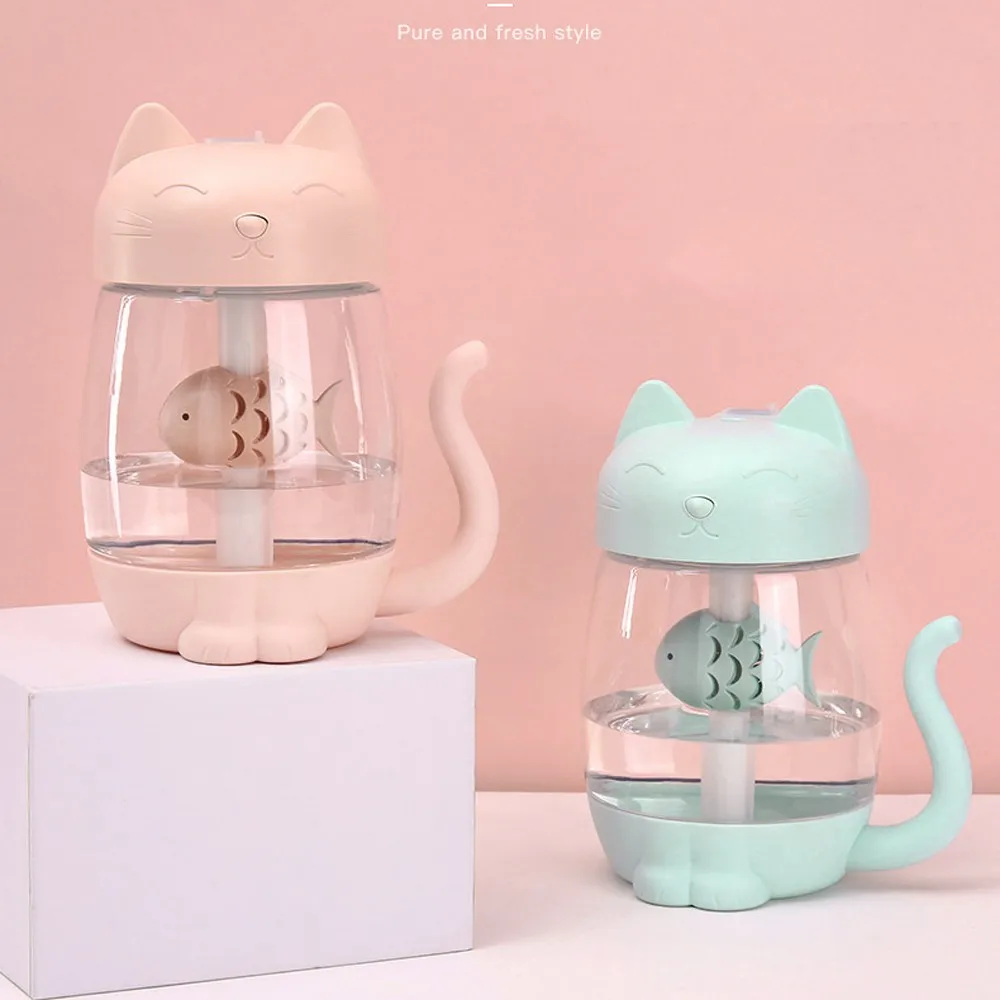 Мини Арома-увлажнитель для ароматерапии диффузор для рабочего стола 3 в 1 увлажнитель воздуха милый кот Светодиодный увлажнитель воздуха вентилятор диффузор очиститель воздуха