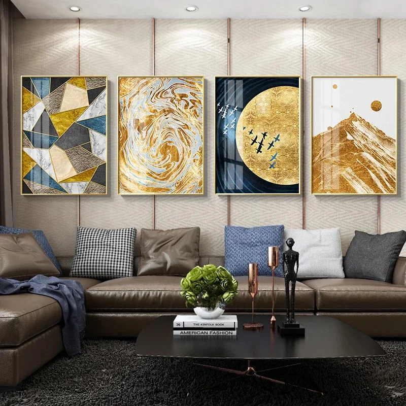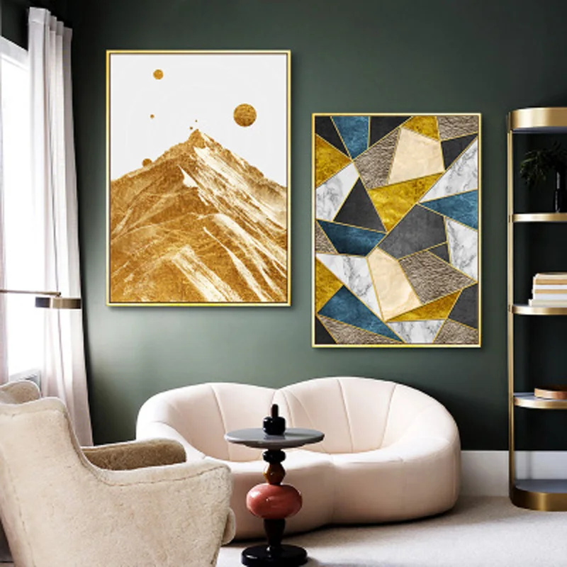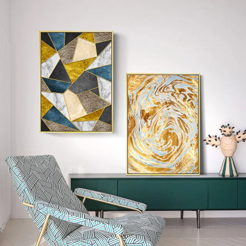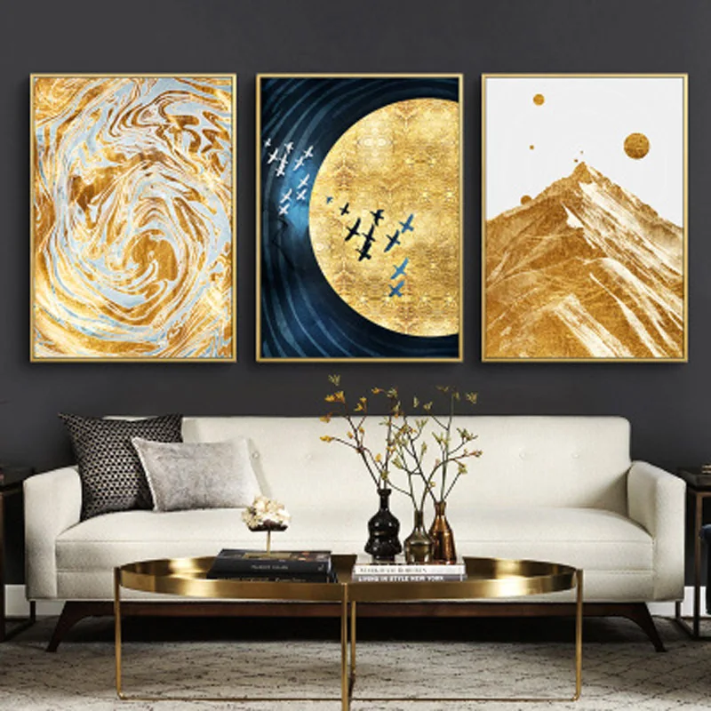 Золотистый Современный абстрактный настенный постер с изображением ...