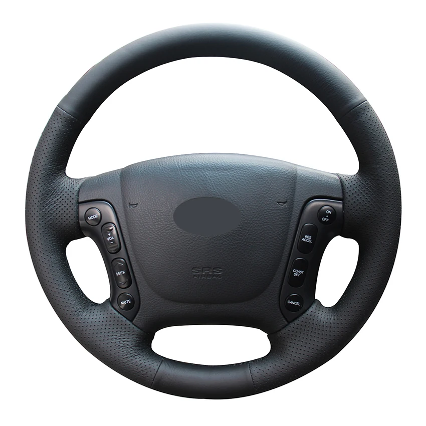 Сшитая вручную черная оплетка рулевого колеса из искусственной кожи...