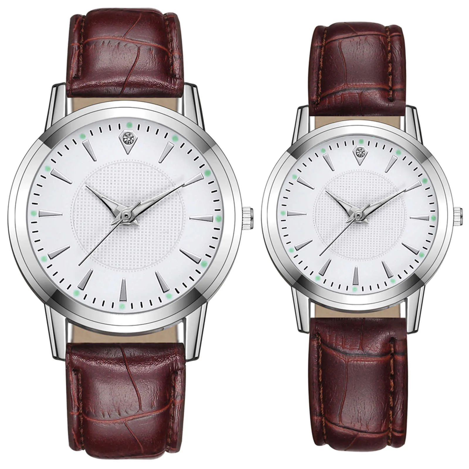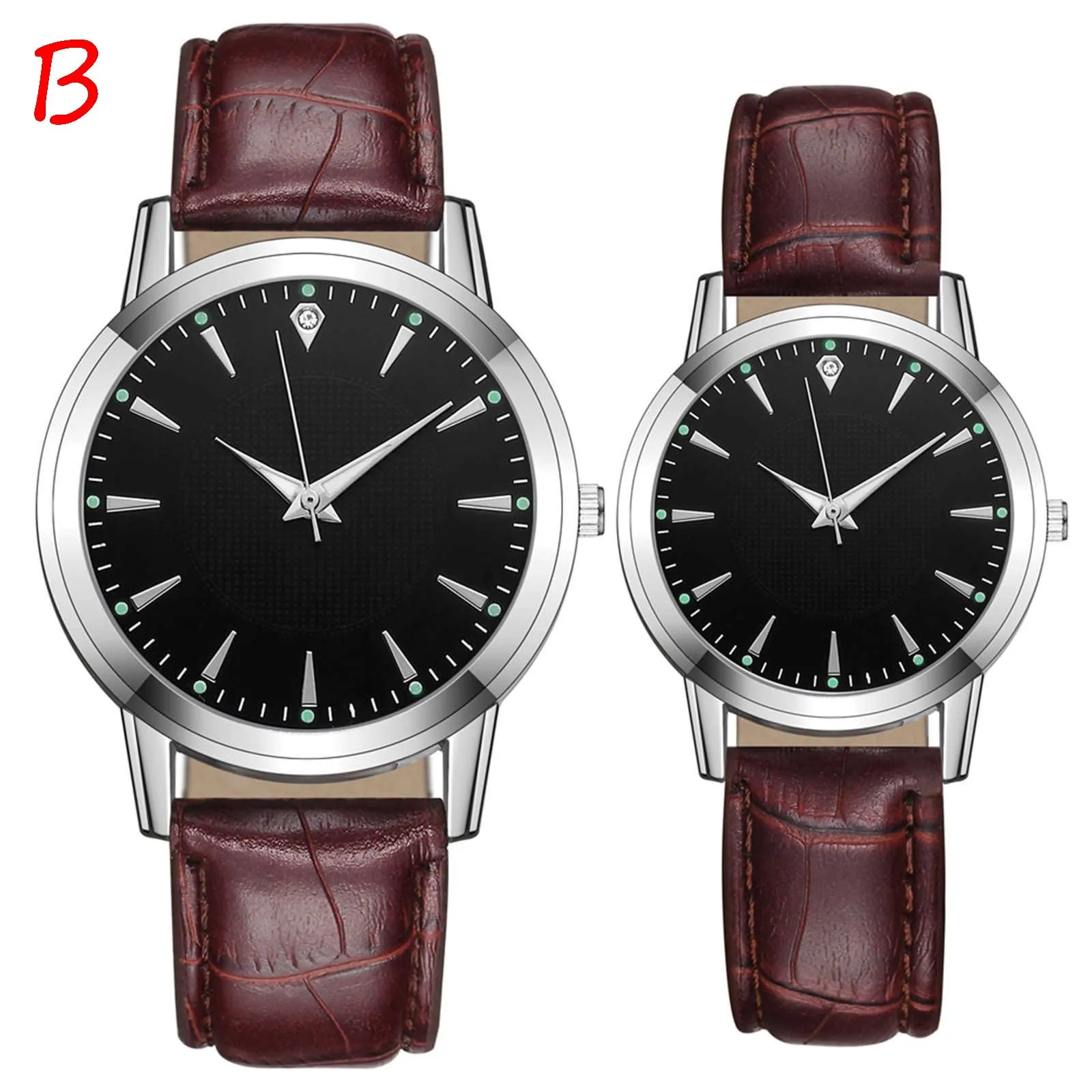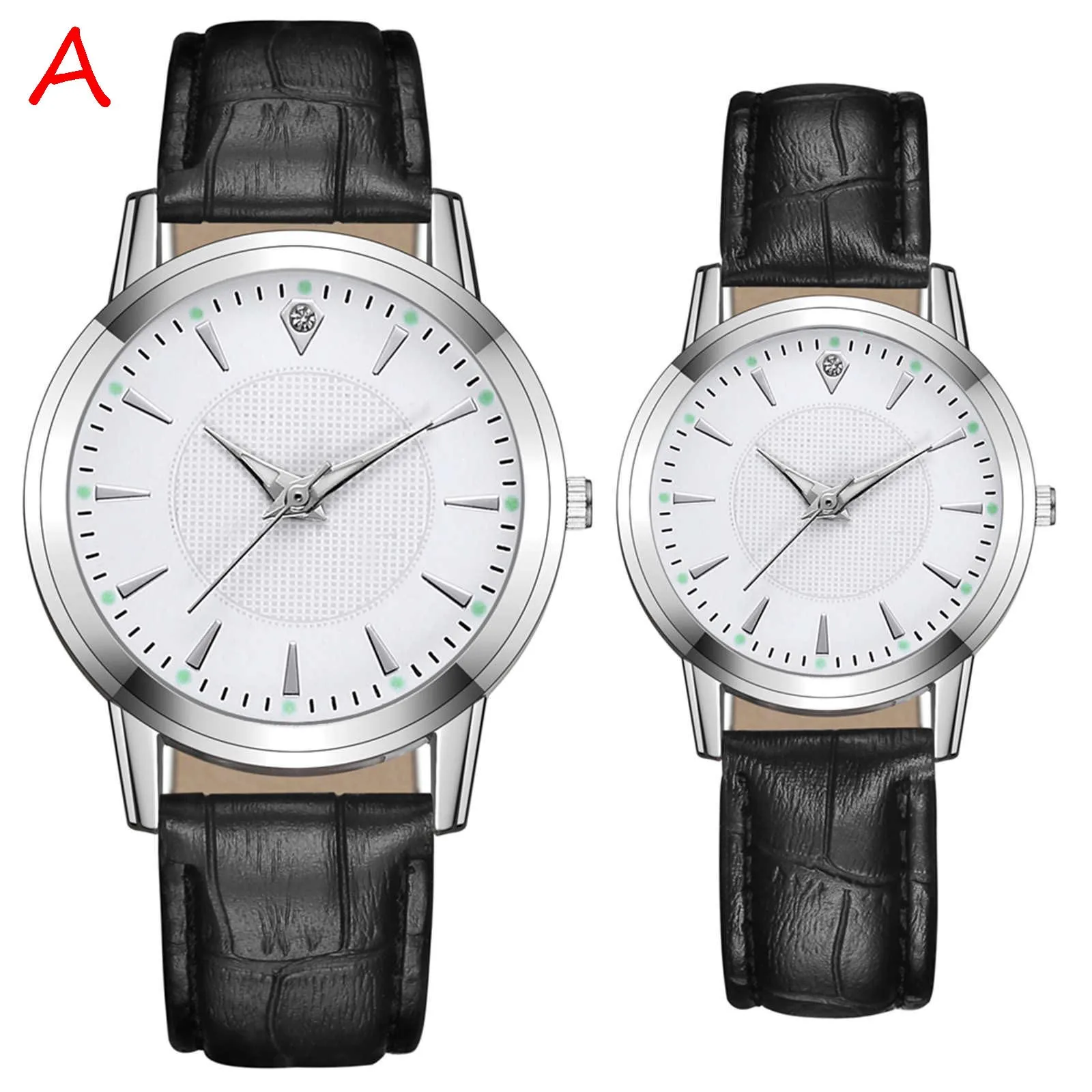 Часы кварцевые для пары, светящиеся с кожаным ремешком, без чисел, 2 шт.