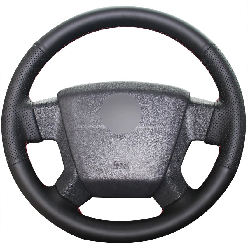 Сшитая вручную черная оплетка рулевого колеса из искусственной кожи...