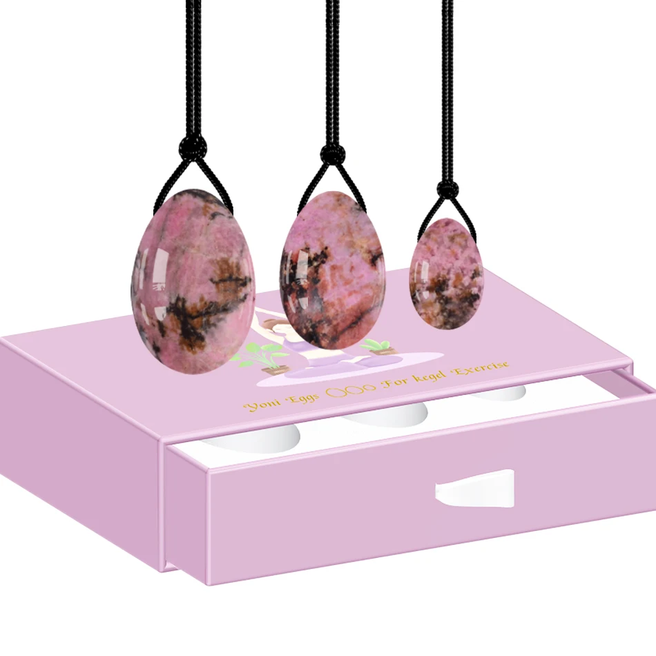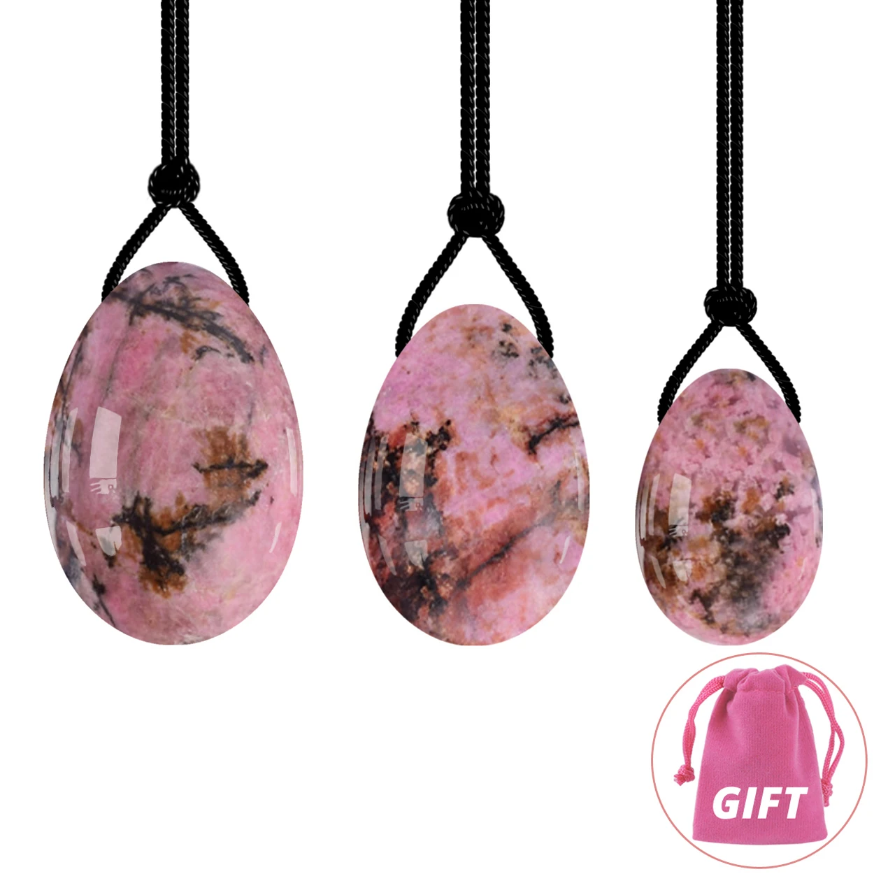 Натуральное яйцо Родонит Йони 3 размера для Женщин Упражнения Кегеля Нефритовое Яйцо инструмент для подтяжки мышц влагалища Просверленный массажный шар Yoni