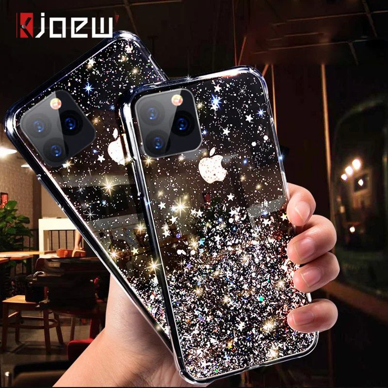 Блестящий чехол KJOEW с блестками для iPhone 11 12 13 Pro Xs Max X XR 8 7 Plus 6 6s, блестящий прозрачный чехол с эпоксидной звездой, мягкий чехол из ТПУ