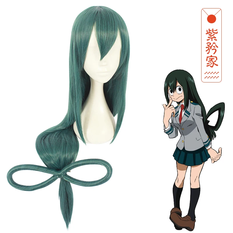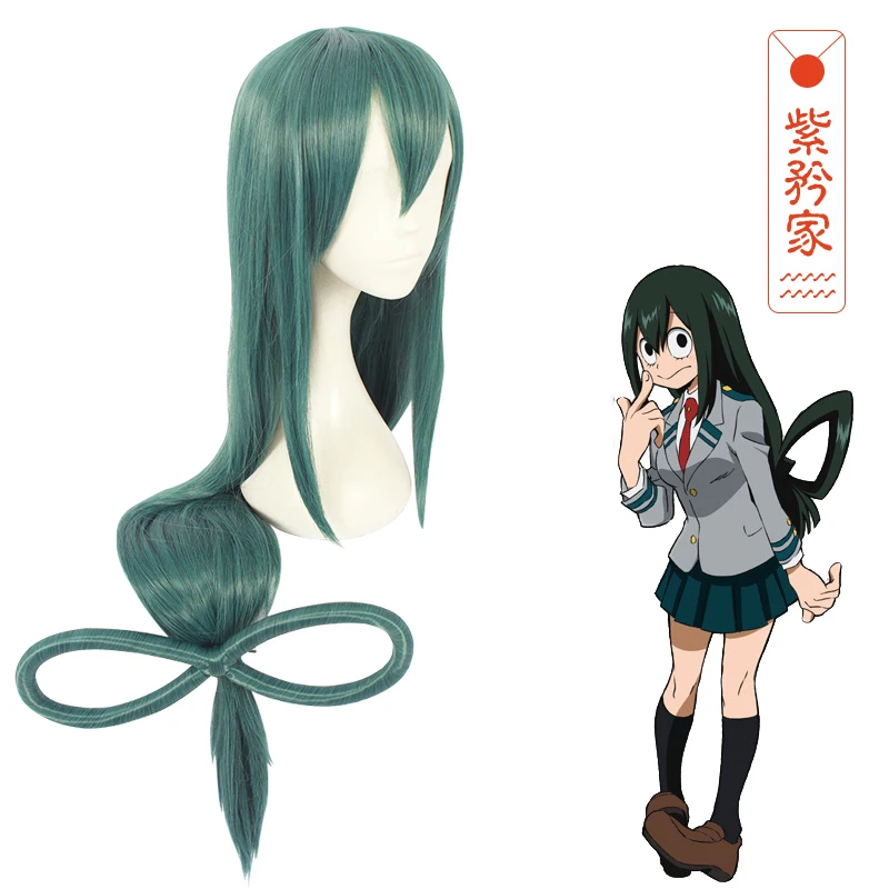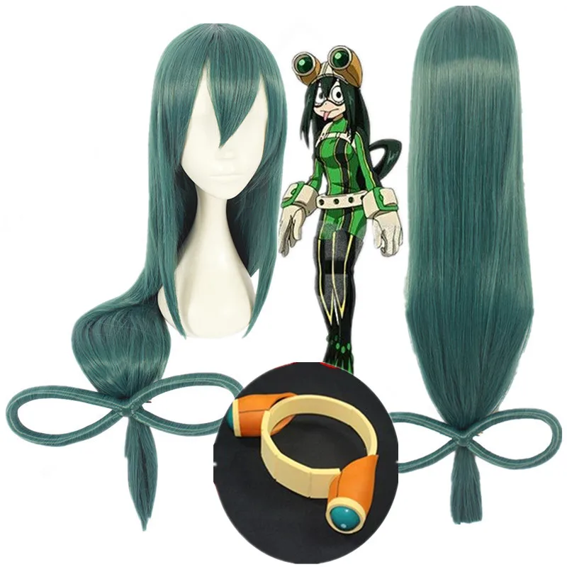 Мой герой Академии Баку без герой Asui цую парик темно-зеленый 100 см, прямые накладные волосы косплей парики + парик Cap очки в стиле Косплей Аксессуары