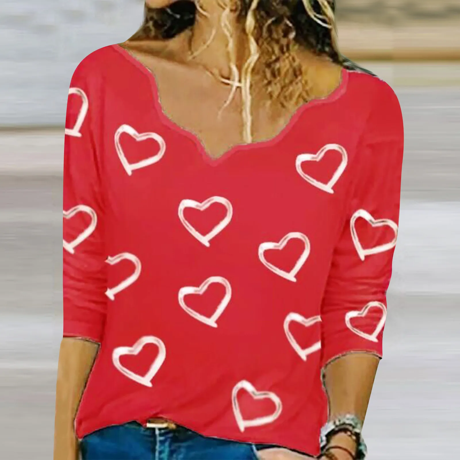 Женская блузка с принтом сердца, асимметричный воротник, пуловер, рубашка с длинным рукавом, элегантный весенний пуловер, 40 #