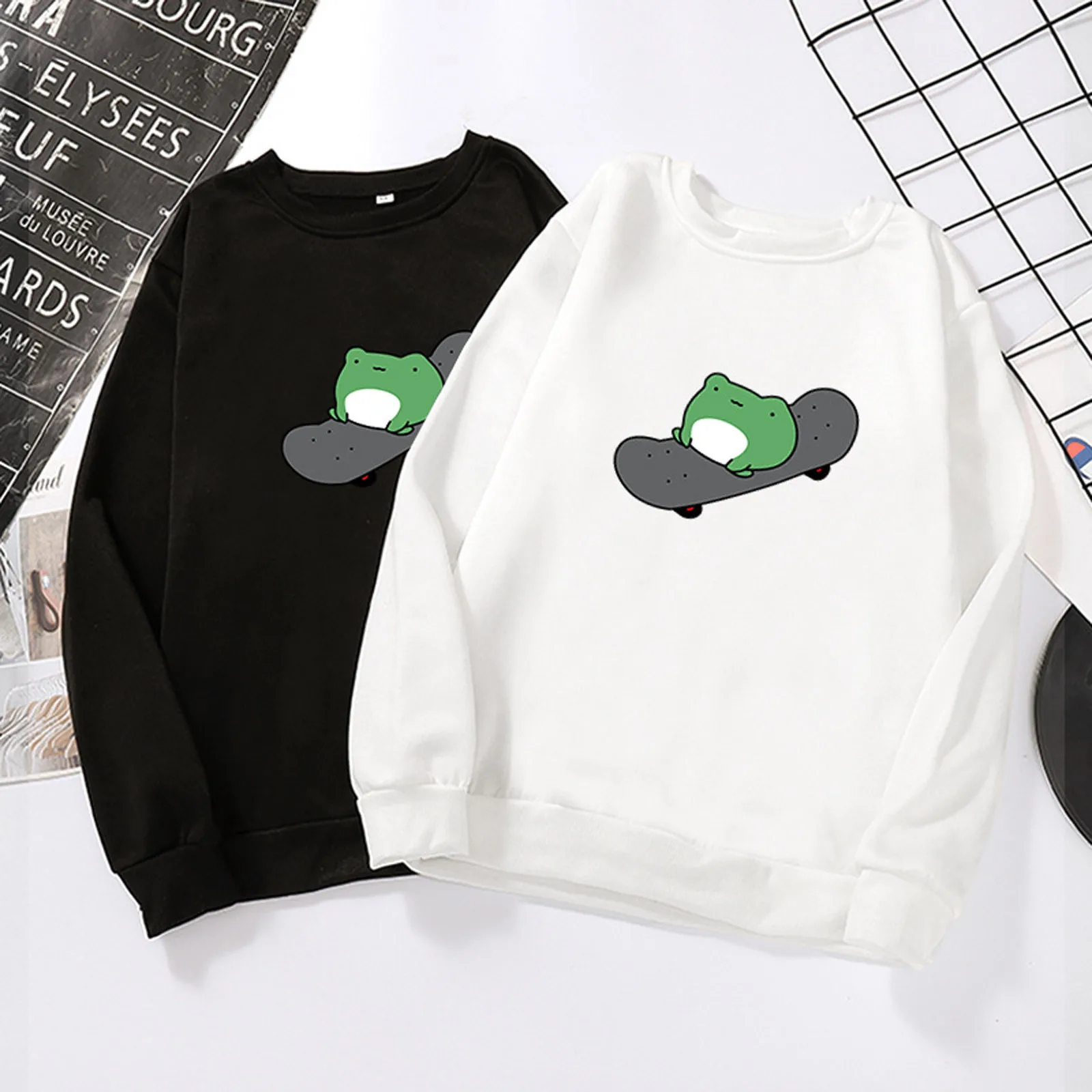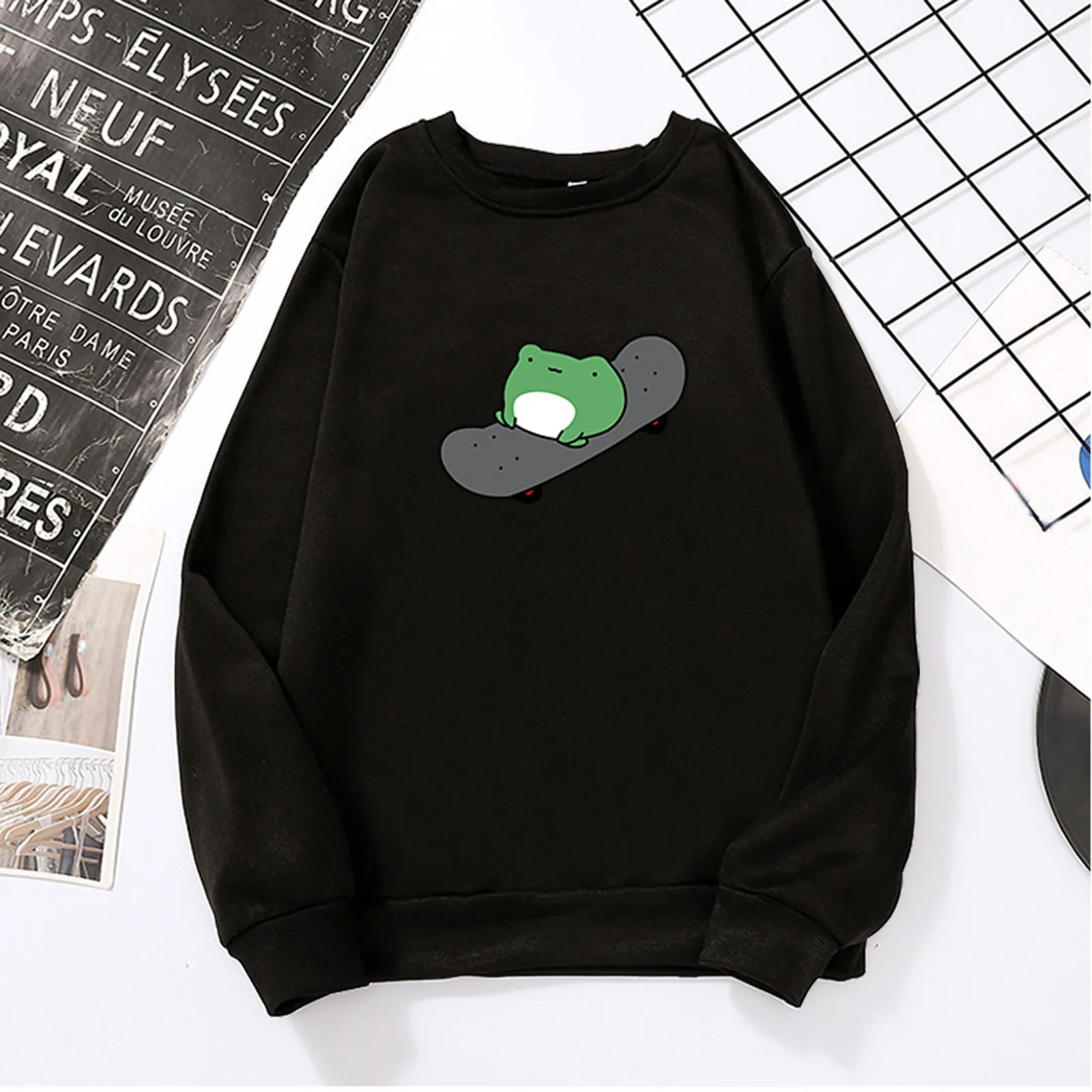 40 # Дамский фуражку кофта животных с рисунком лягушки кофты с длинным рукавом милые ослабить пуловер с О-образным вырезом элегантные топы толстовка женская худи