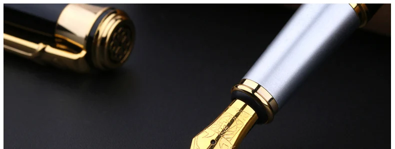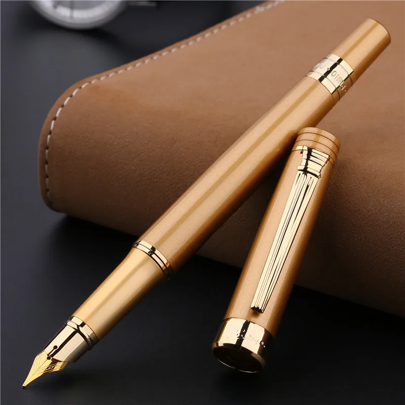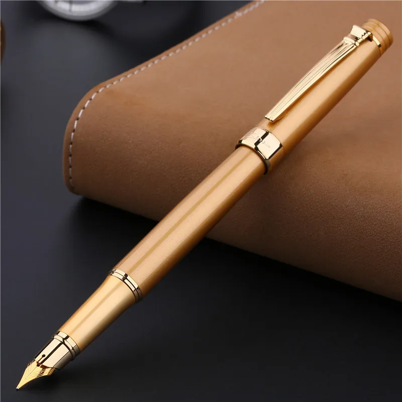 Перьевая ручка Picasso Pimio, металлическая, гладкая, черная и золотая, с зажимом, канцелярские принадлежности, новинка 903