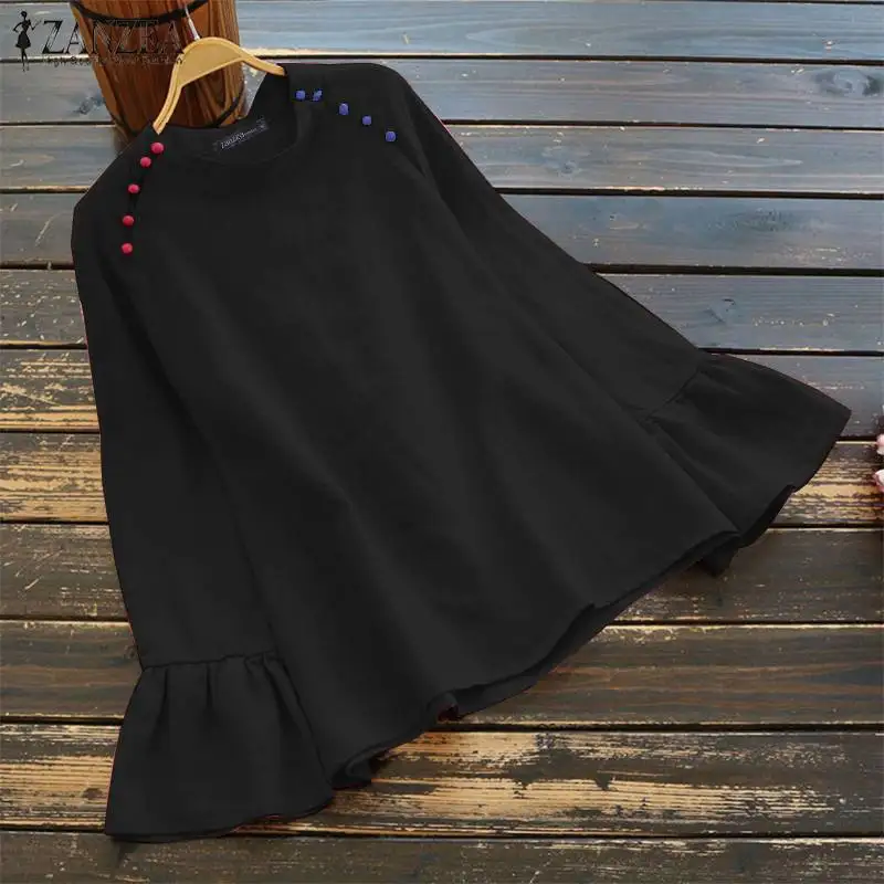 Женская мешковатая однотонная блузка ZANZEA 2021, винтажные топы с ...