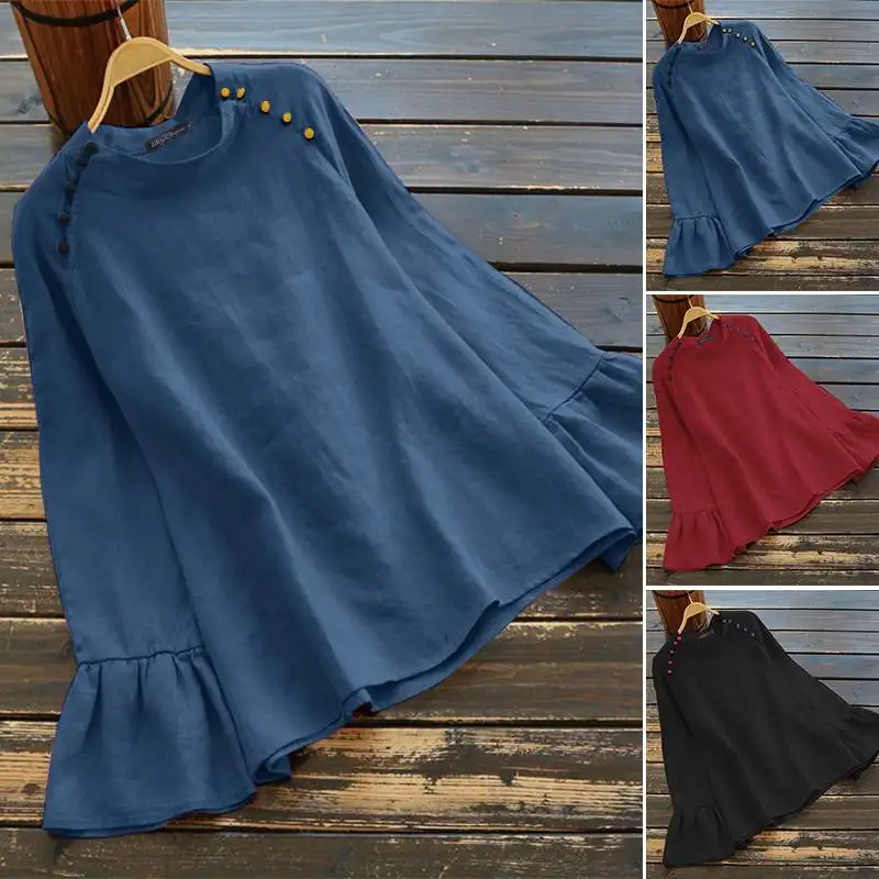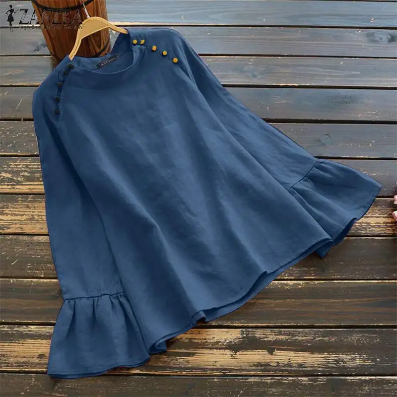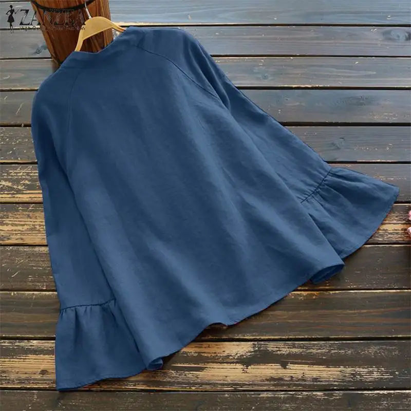Блузка ZANZEA женская льняная с длинным рукавом, повседневный кафтан, рубашка на пуговицах, однотонный топ, хлопковая туника, осень 2021
