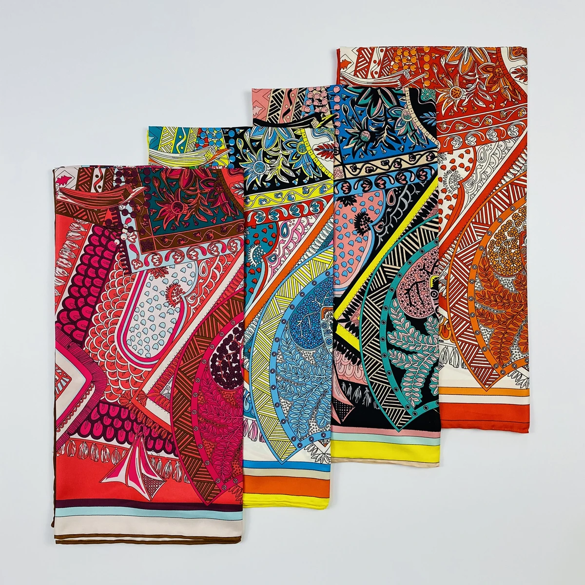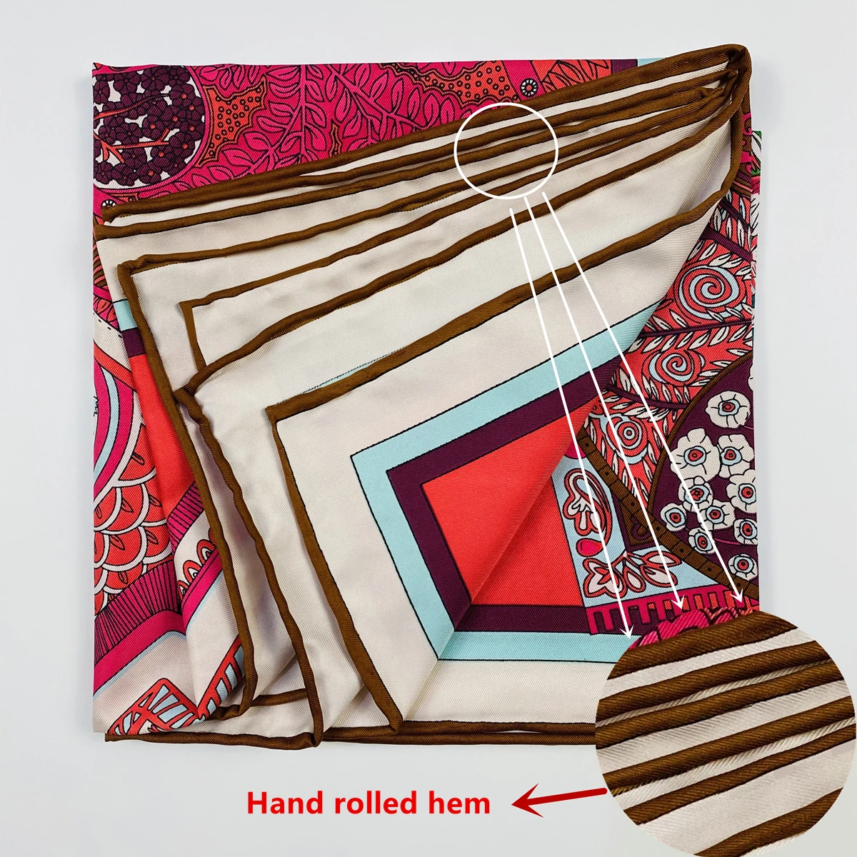 90 см роскошный квадратный шарф для женщин 100% твил Шелковый ручной свернутый подол хиджаб шарф платок фирменный дизайн шарфы для женщин