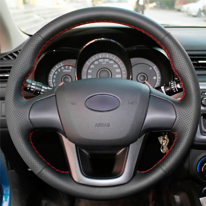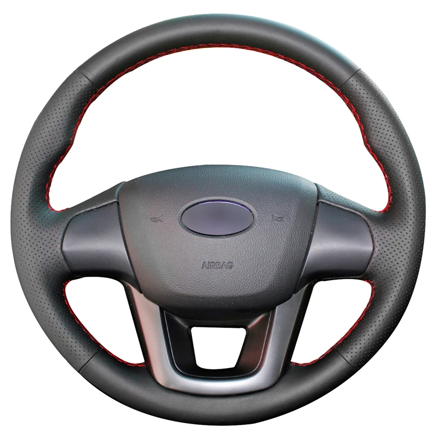 Рука сшитый черный PU Искусственная кожа изготовленная на заказ Чехол рулевого колеса автомобиля для Kia K2 РИО 2011 2012 2013 2014 2015 2016