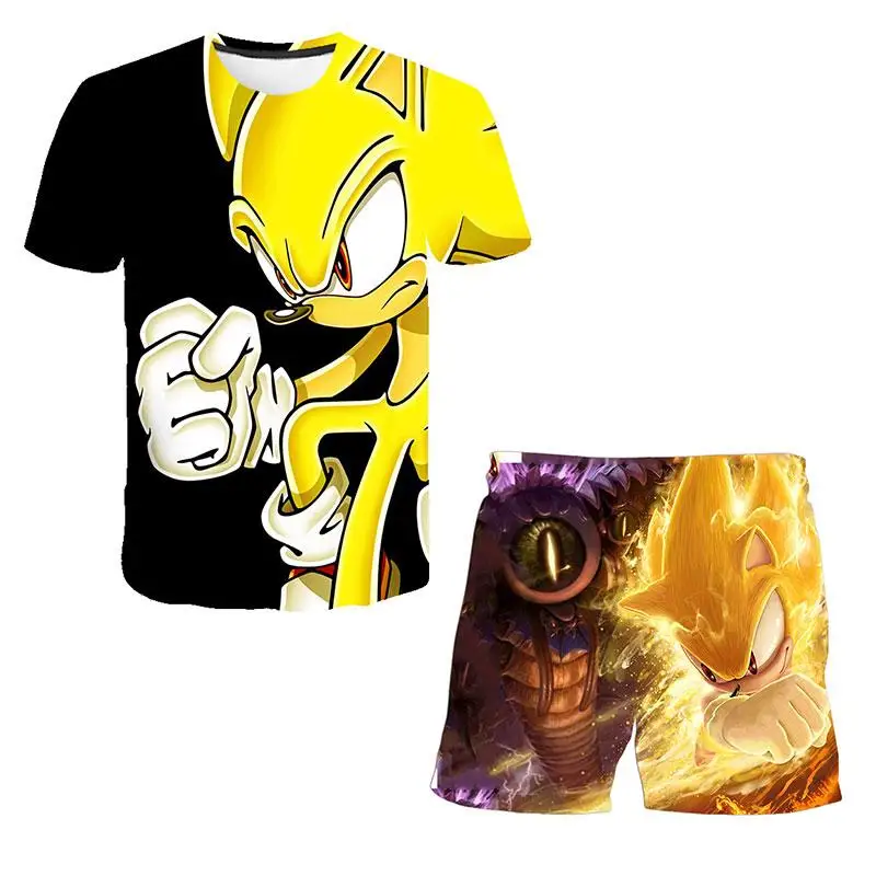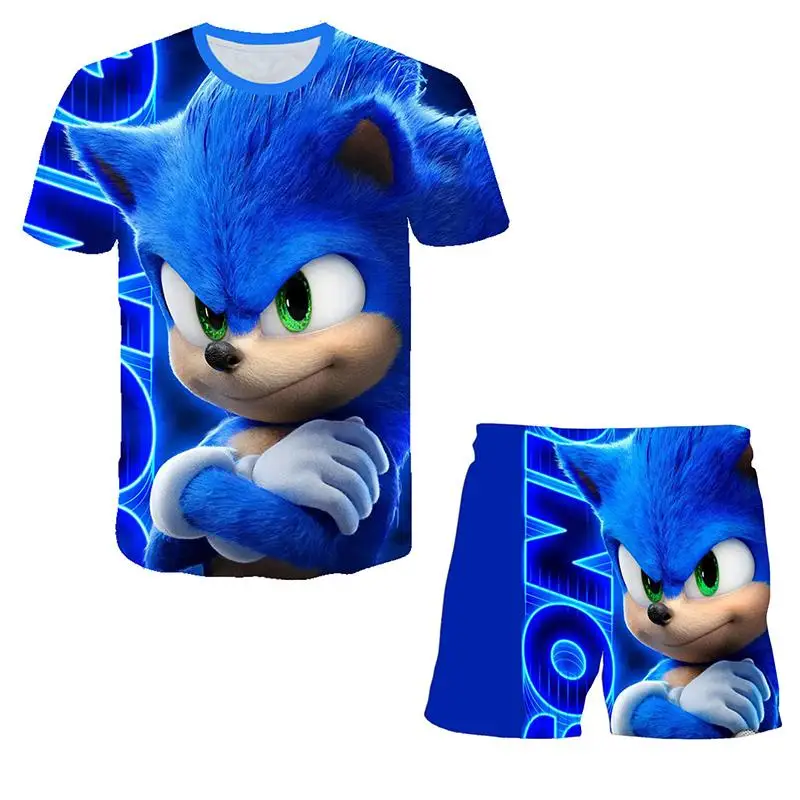 Детский комплект одежды, футболки с мультипликационным принтом, футболка для девочек 2021 с Соник, детская одежда, футболка для мальчиков и короткие штаны, футболки из 2 предметов для девочек-подростков