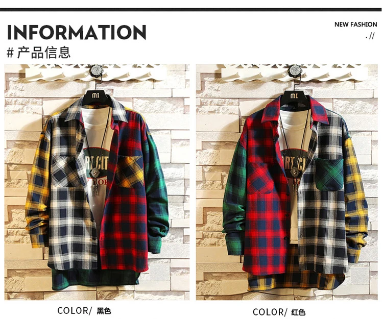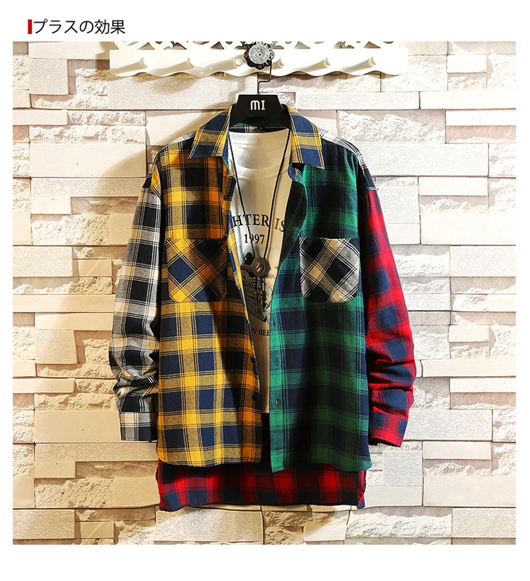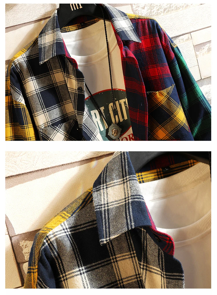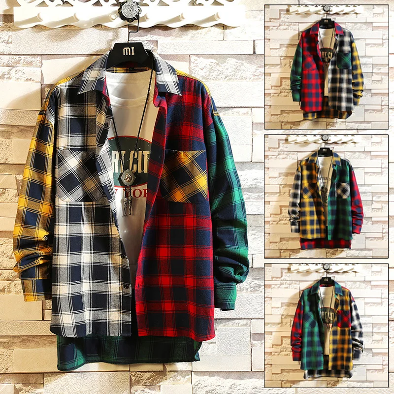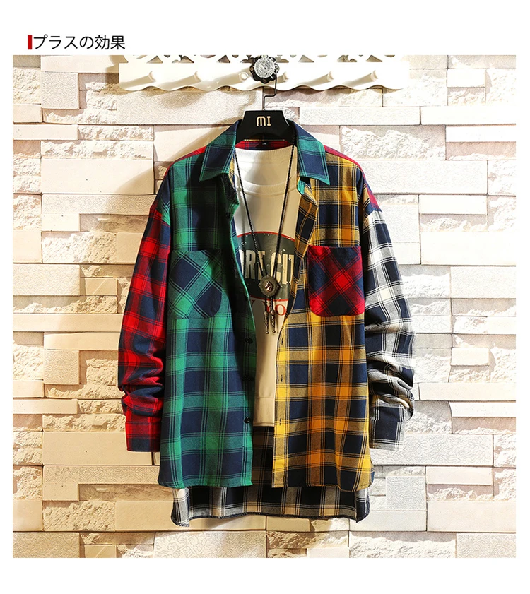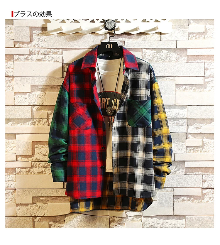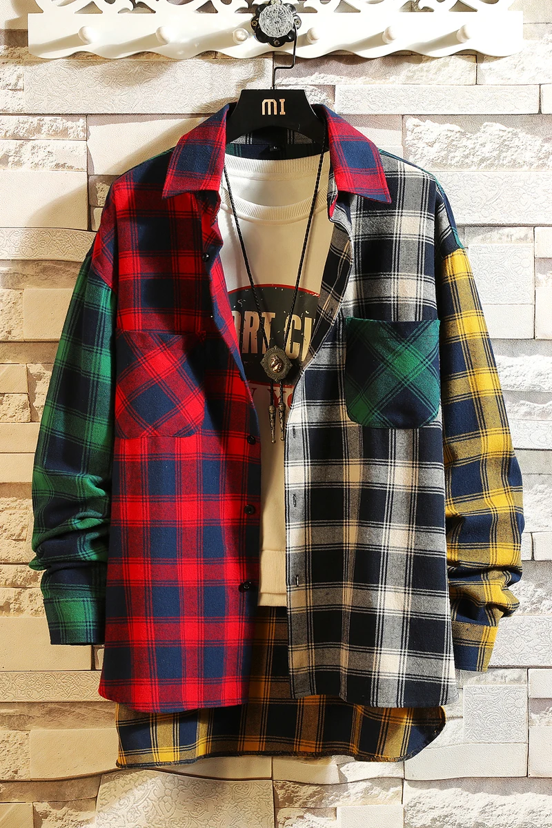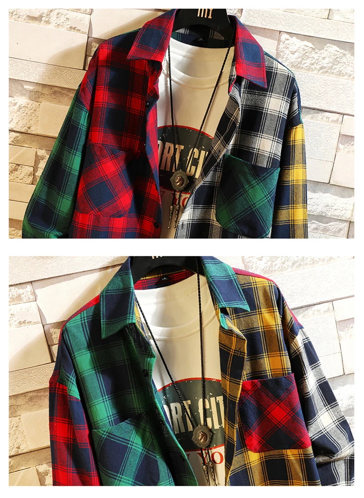 Мужская рубашка в клетку, Повседневная Свободная рубашка в стиле хи...