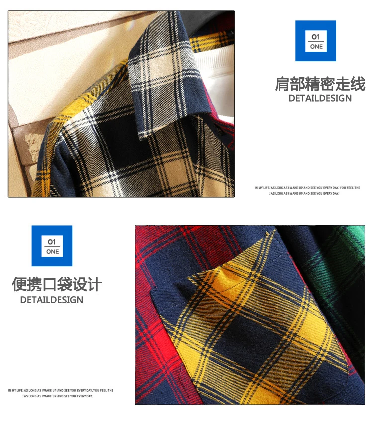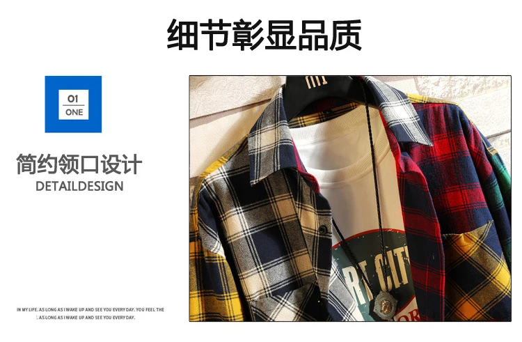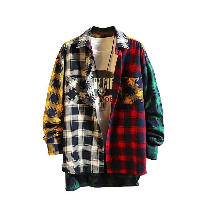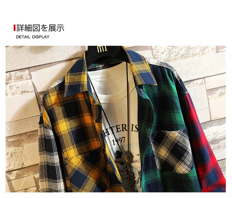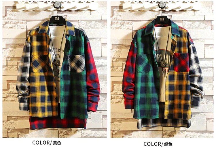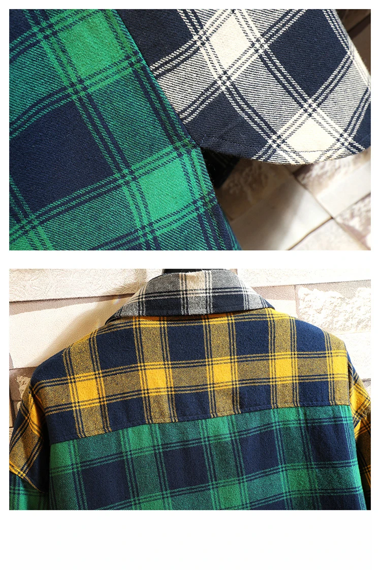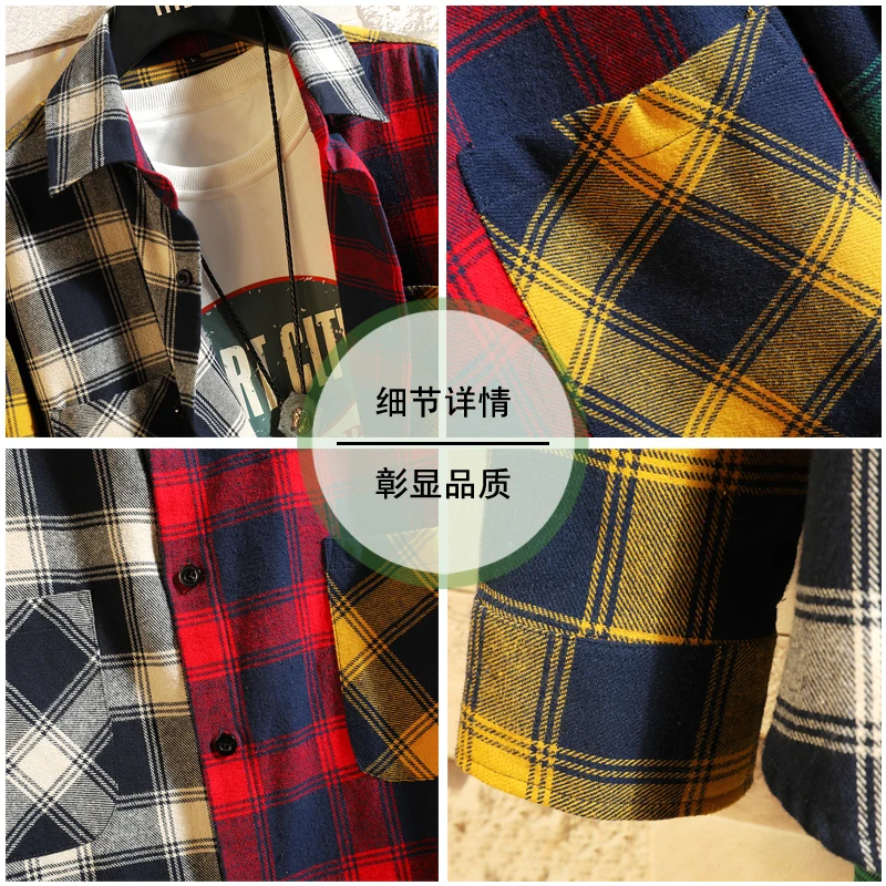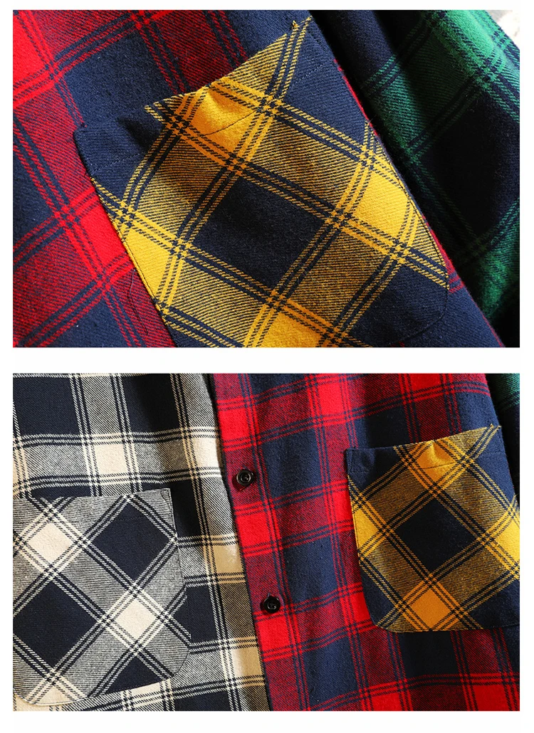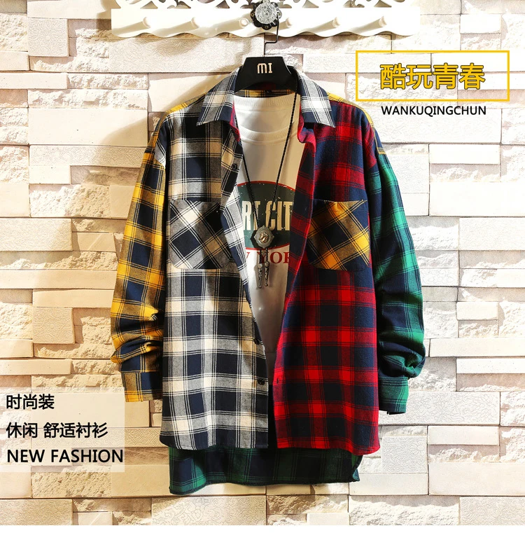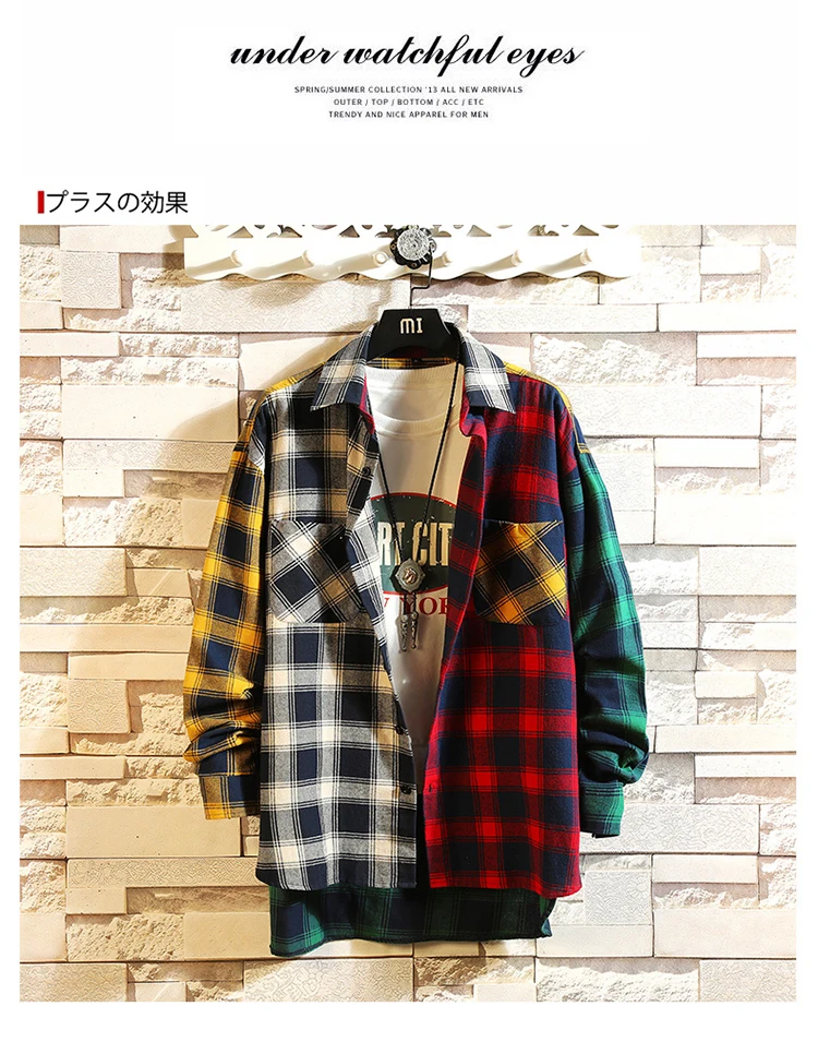 Мужская рубашка в клетку, Повседневная Свободная рубашка в стиле хи...