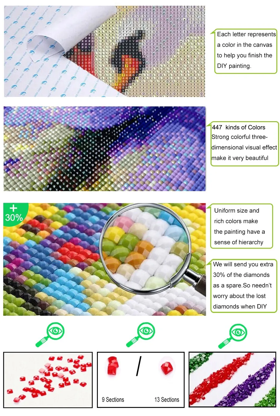 Алмазная картина IY внимание: 1. Перед началом операции. 2. Если вы не знаете, какой цвет использовать, пожалуйста, обратитесь к таблице цветов. 3. В собранном виде алмазы должны быть заострены внутри линии среза, а затем обрезные части, чтобы обеспечить общий эффект. 4. Алмаз несъедобный, не позволяйте детям играть, чтобы избежать несчастных случаев, таких как глотание. 5. Чертеж должен быть чистым, в противном случае, на прочность клея влияет. Если есть адгезия грязи может повлиять на них с низкой температурой твердого железа. 6. Алмазы, чтобы оставаться липкой резинкой. Фоторамка: посылка не включает в себя: холст * 1, пинцет * 1, ручка для инструментов * 1, пластина * 1, достаточное количество алмазов и клеевой грязи. PS:1. Высылаем дополнительно 15-30% алмазов 2. Чем больше размер, тем лучше эффект изображения.