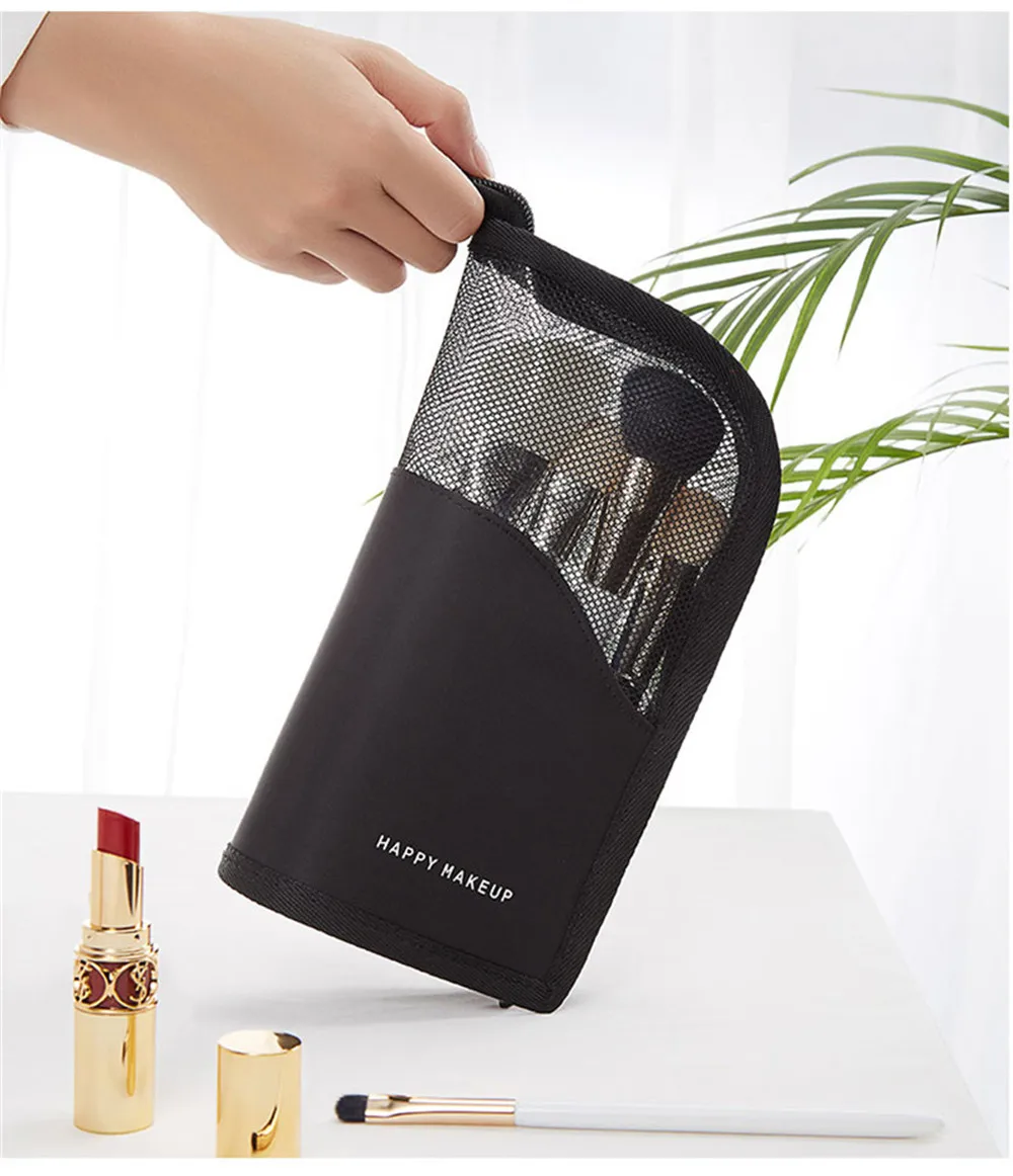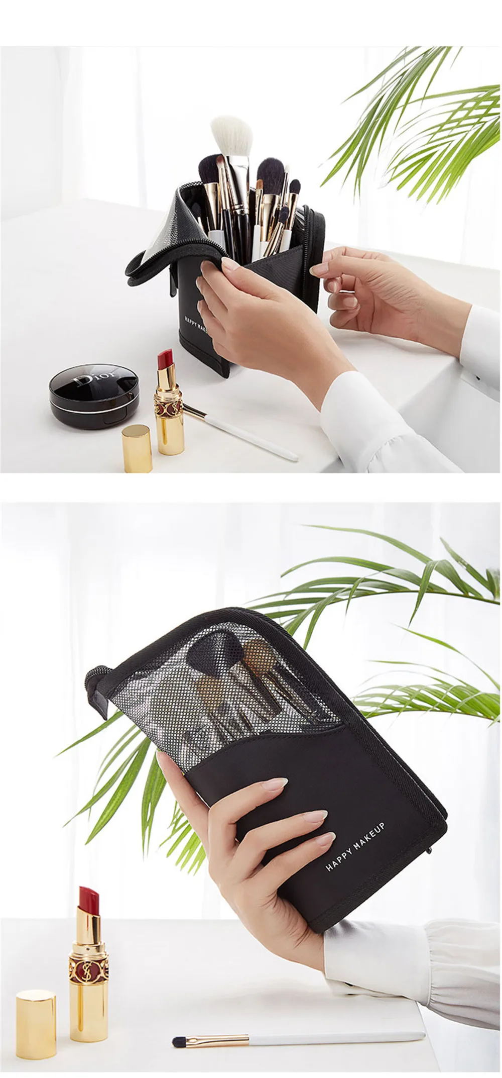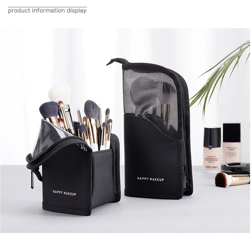 Женский Прозрачный чехол на молнии для макияжа, функциональная дорожная косметичка для женщин, держатель для кистей для макияжа, органайзер, Сумка Для Хранения Туалетных Принадлежностей