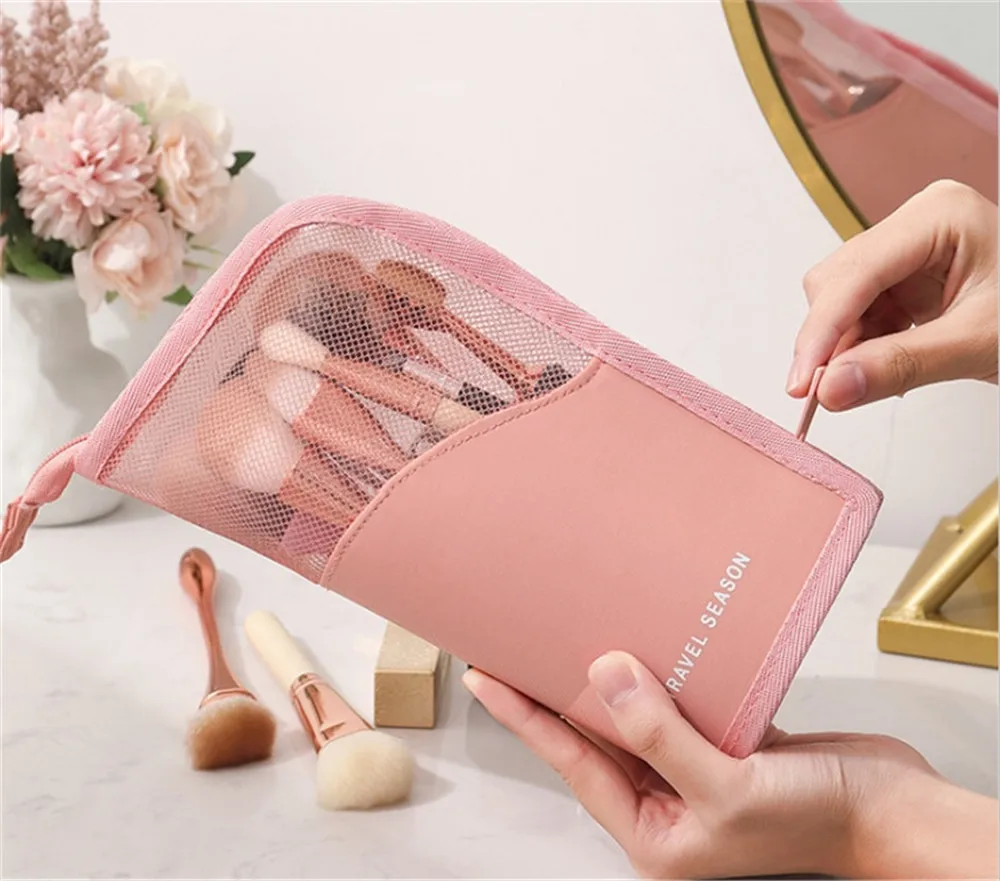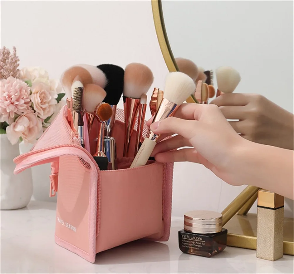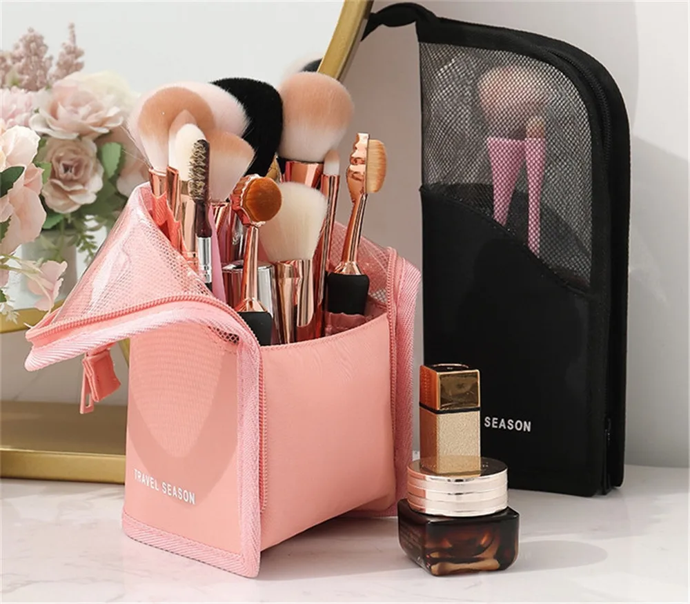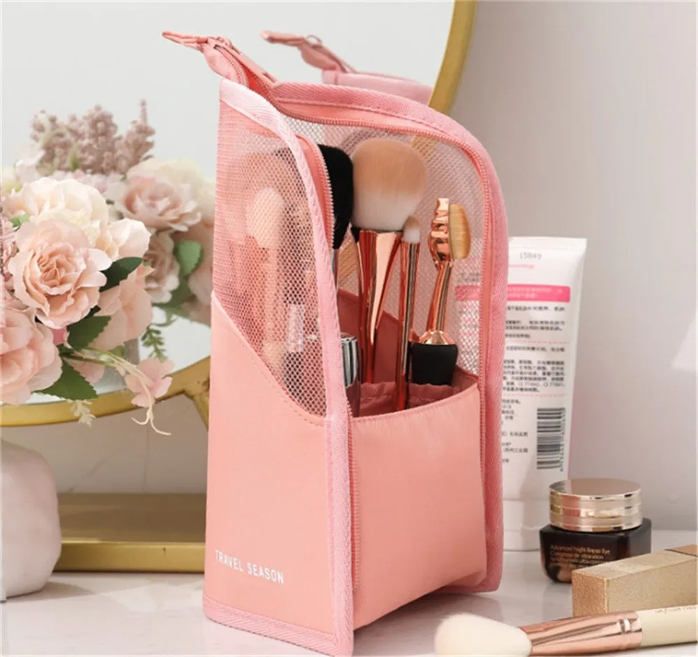 Женский Прозрачный чехол на молнии для макияжа, функциональная дорожная косметичка для женщин, держатель для кистей для макияжа, органайзер, Сумка Для Хранения Туалетных Принадлежностей