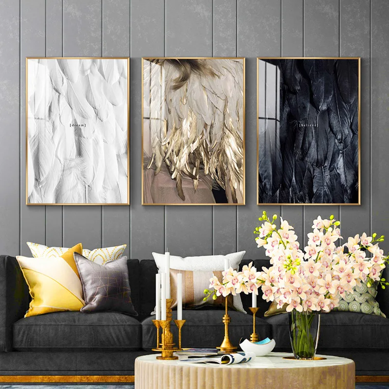 Скандинавский стиль, золотые крылья, перья, холст, живопись на стен...