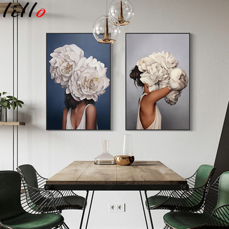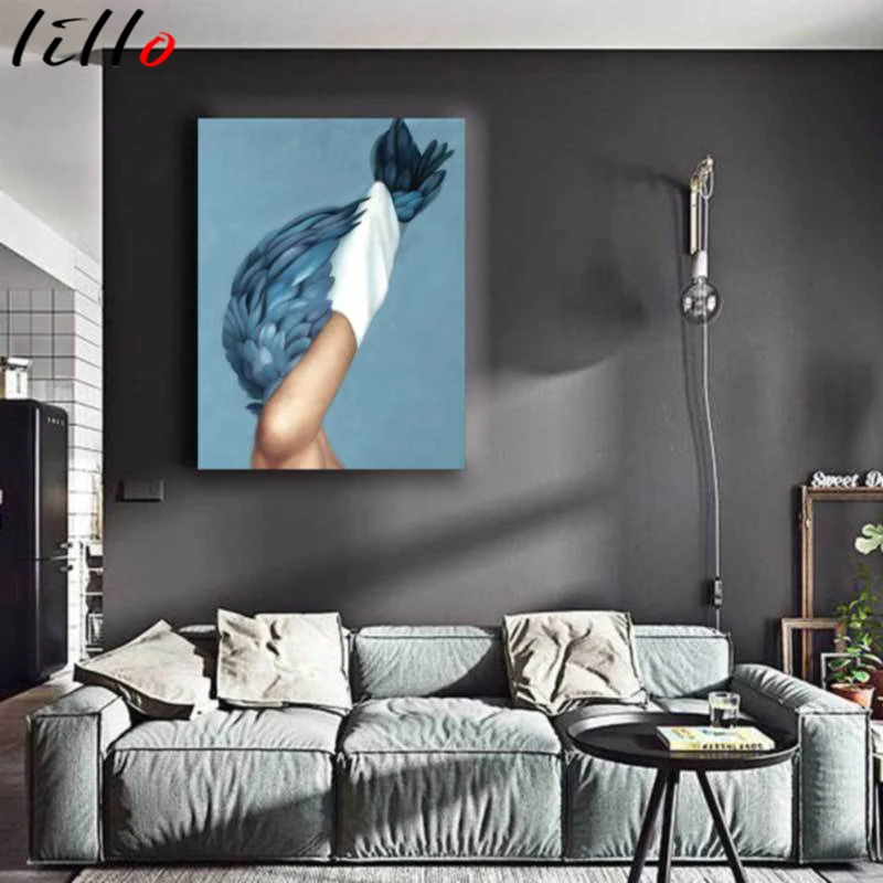 Абстрактная Картина на холсте с цветами и перьями для женщин, настенный художественный плакат, украшение для гостиной и дома