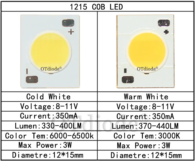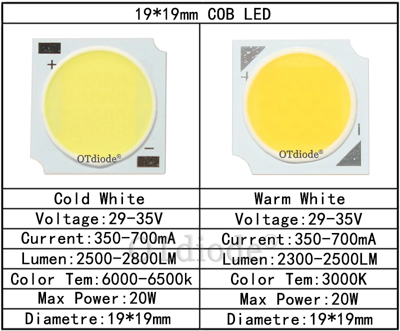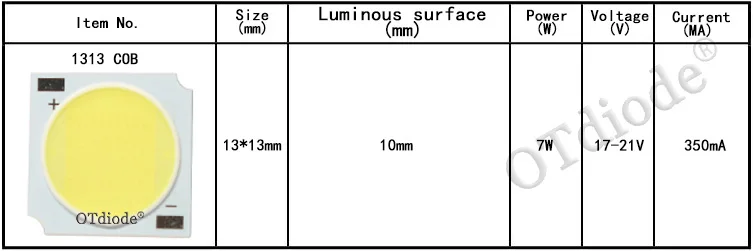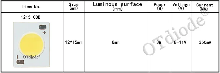 Размер чипа COB: 17x3 4mil/0,5 W/leds/ Lumen:100-110lm/w