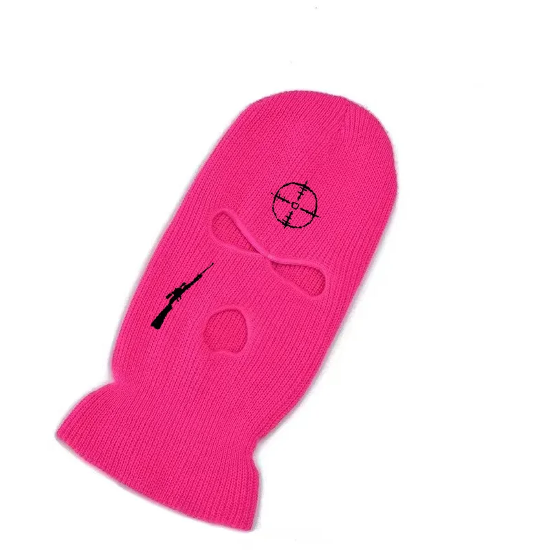 Балаклава с вышивкой снайперской винтовки, маска на все лицо, зимняя шапка для женщин, лыжная маска, теплая вязаная шапка, шапки для спорта на открытом воздухе