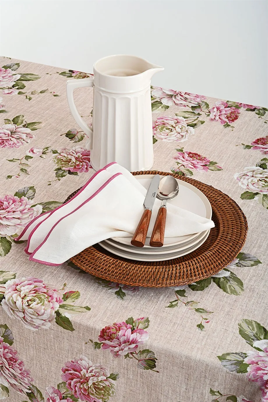 * Наши салфетки изготовлены из 100% льняной ткани; Они белого цвета и имеют розовые детали.