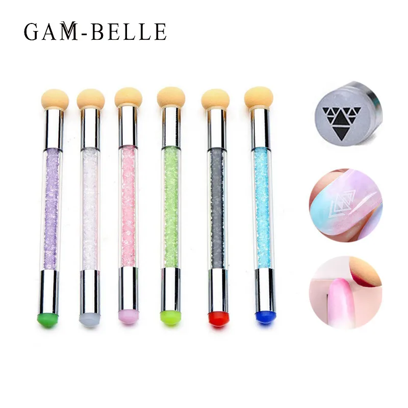 GAM-BELLE, 1 шт., двухсторонняя губчатая головка, силиконовый штамп для ногтей, кисть для ногтей, градиентная раскрашивающая ручка, цветущая штамповка, инструмент для рисования ногтей