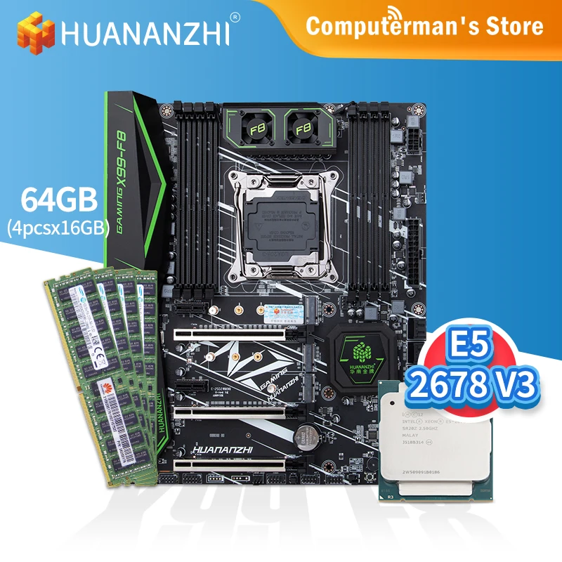 Материнская плата HUANANZHI x99-f8 с процессором Intel XEON E5 2678 V3, память 4*16 Гб DDR4 ECC 2133, память M.2 NVME USB3.0 ATX
