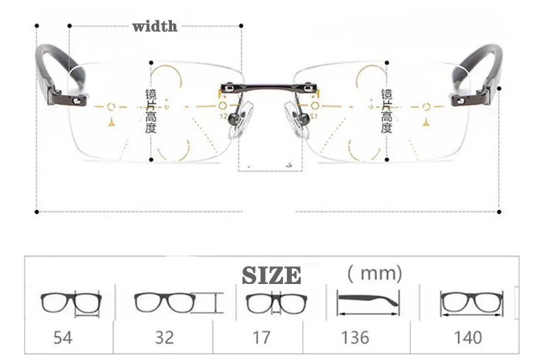 Металлические титановые многофокальные пресбиопические очки для чте...