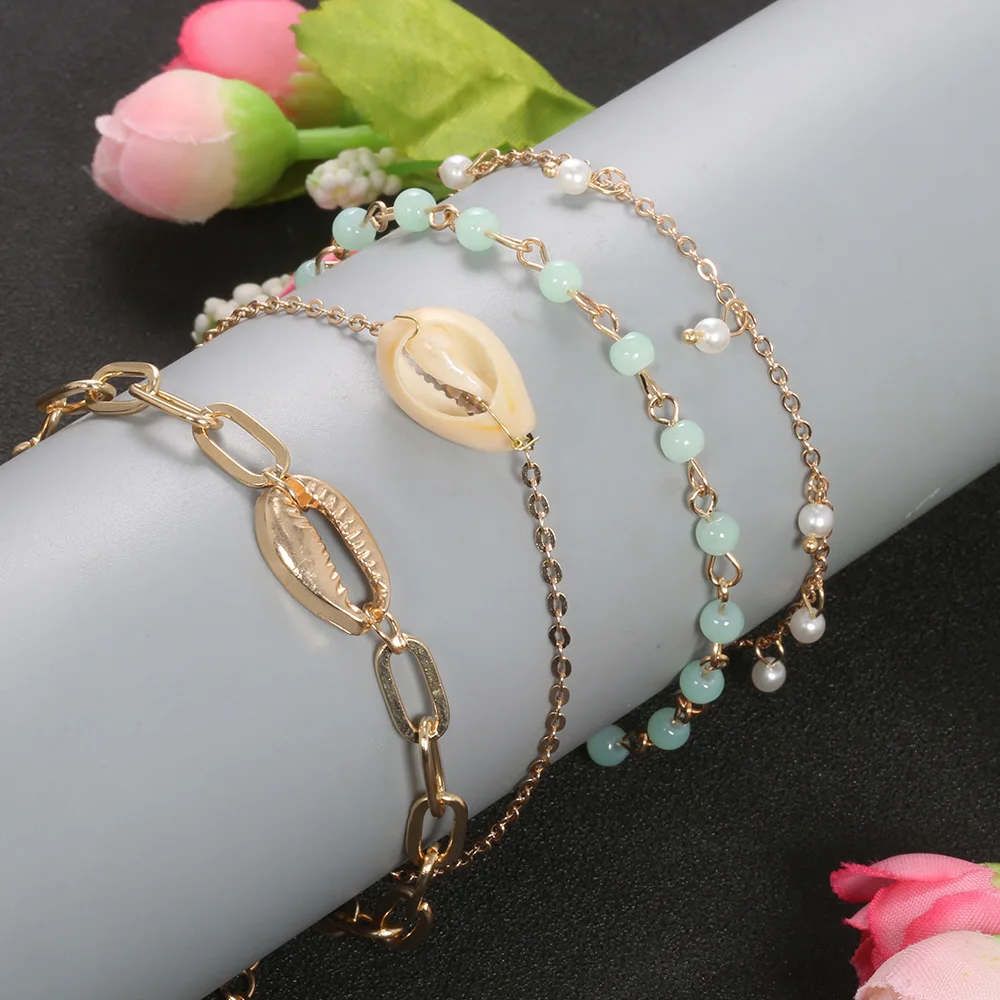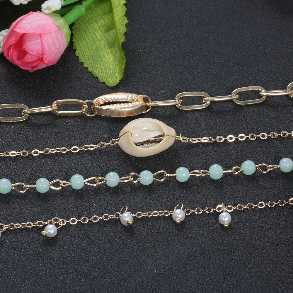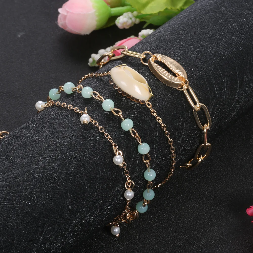 4 шт.компл. модный браслет из ракушек и цепочек набор для женщин богемные бусины из искусственного жемчуга очаровательный браслет для девочек модные ювелирные изделия в подарок
