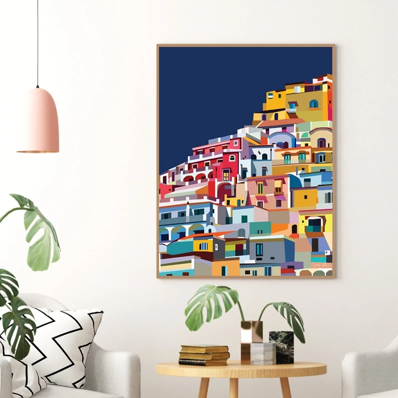 Positano итальянская печать на побережье Амальфи цветная настенная живопись на холсте архитектурный постер домашний Декор постер на побережье Амальфи украшение