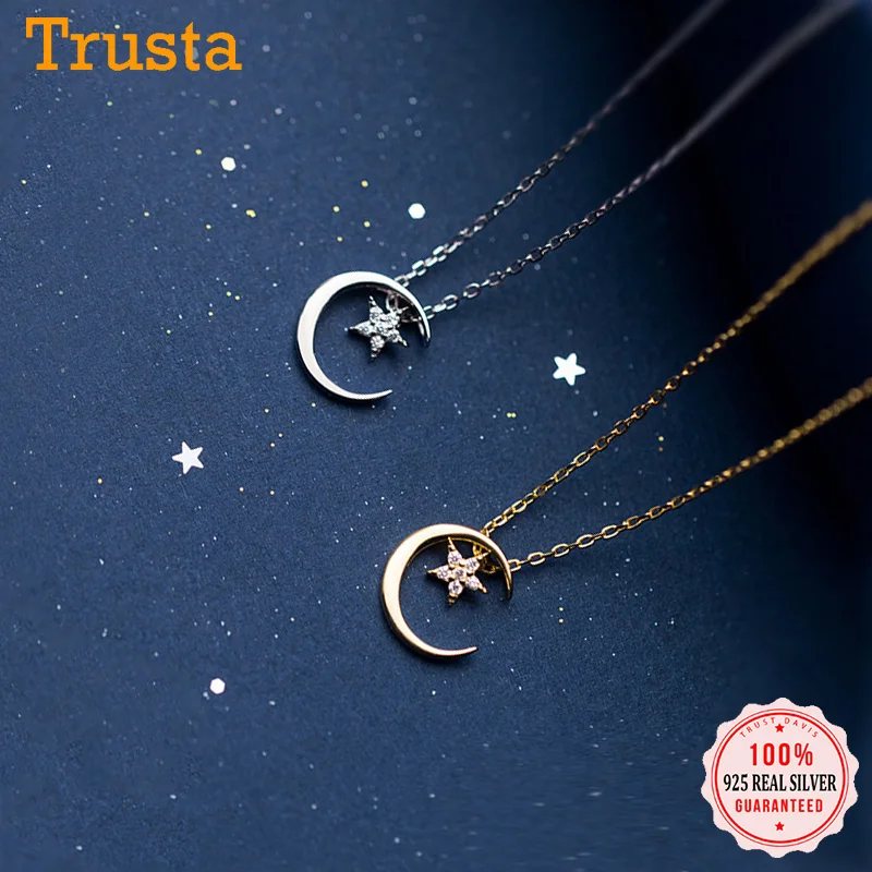 TrustDavis Настоящее серебро 925 пробы, модное сверкающее ожерелье-чокер с Луной и звездами из фианита для женщин, ювелирные изделия для свадьбы, дня рождения DB013