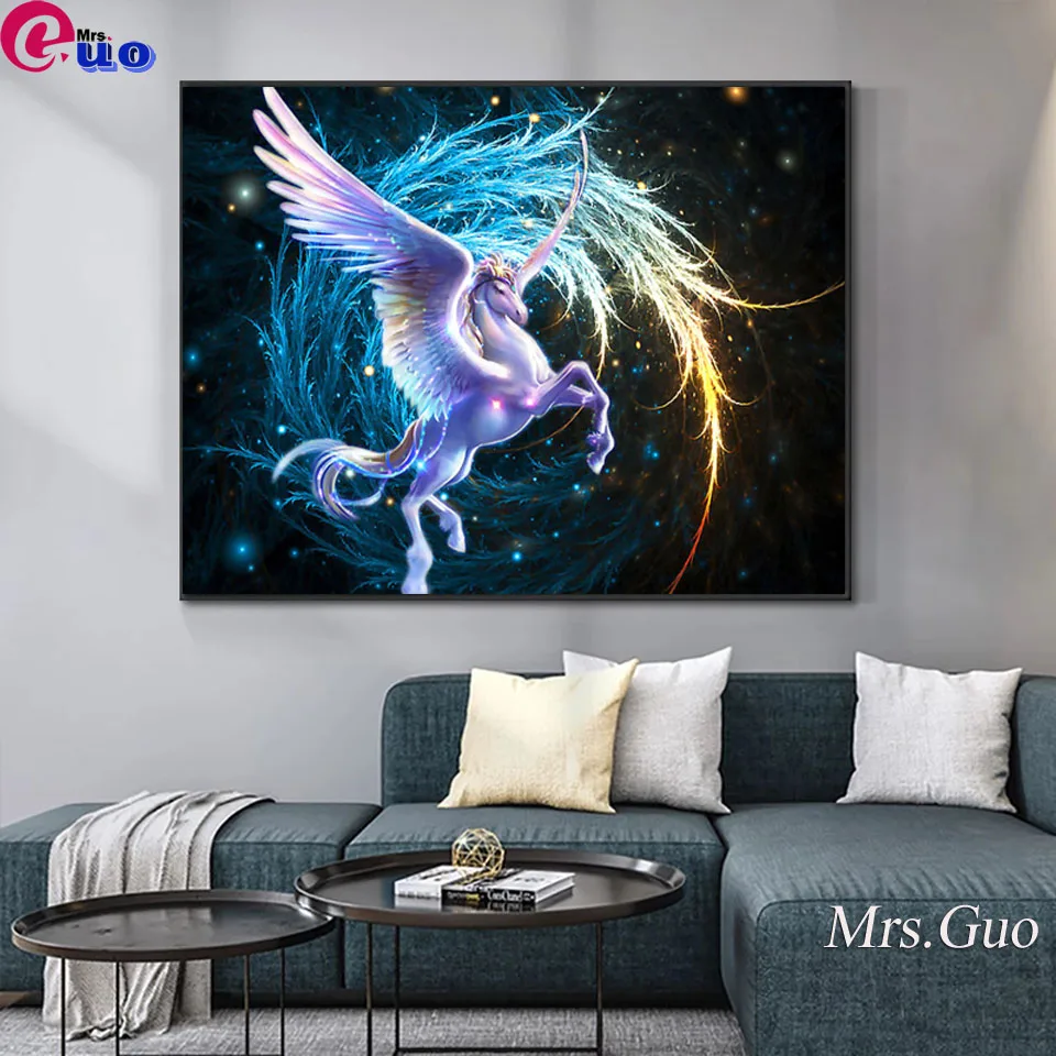 Алмазная живопись, планета, абстрактный пейзаж, единорог, полный кв...
