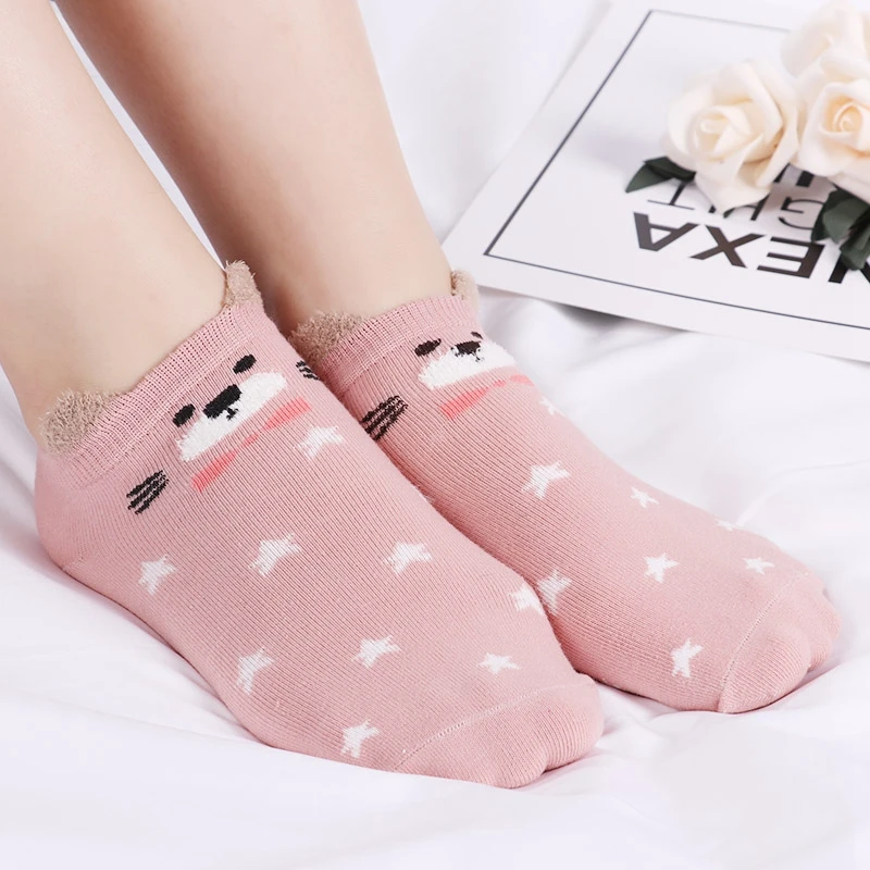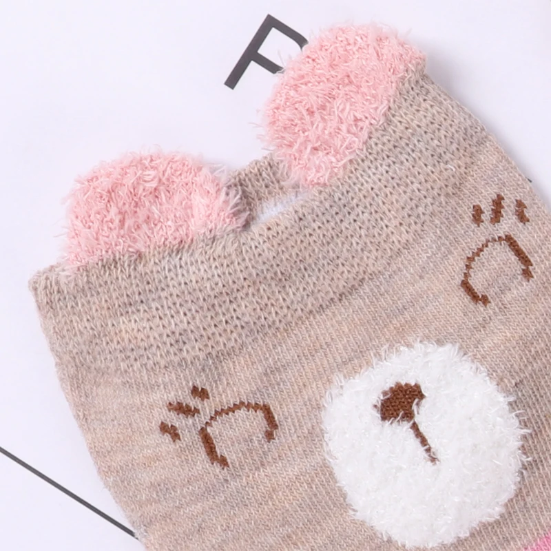 Носки женские, хлопковые, с плюшевыми ушками, с принтом в стиле Харадзюку