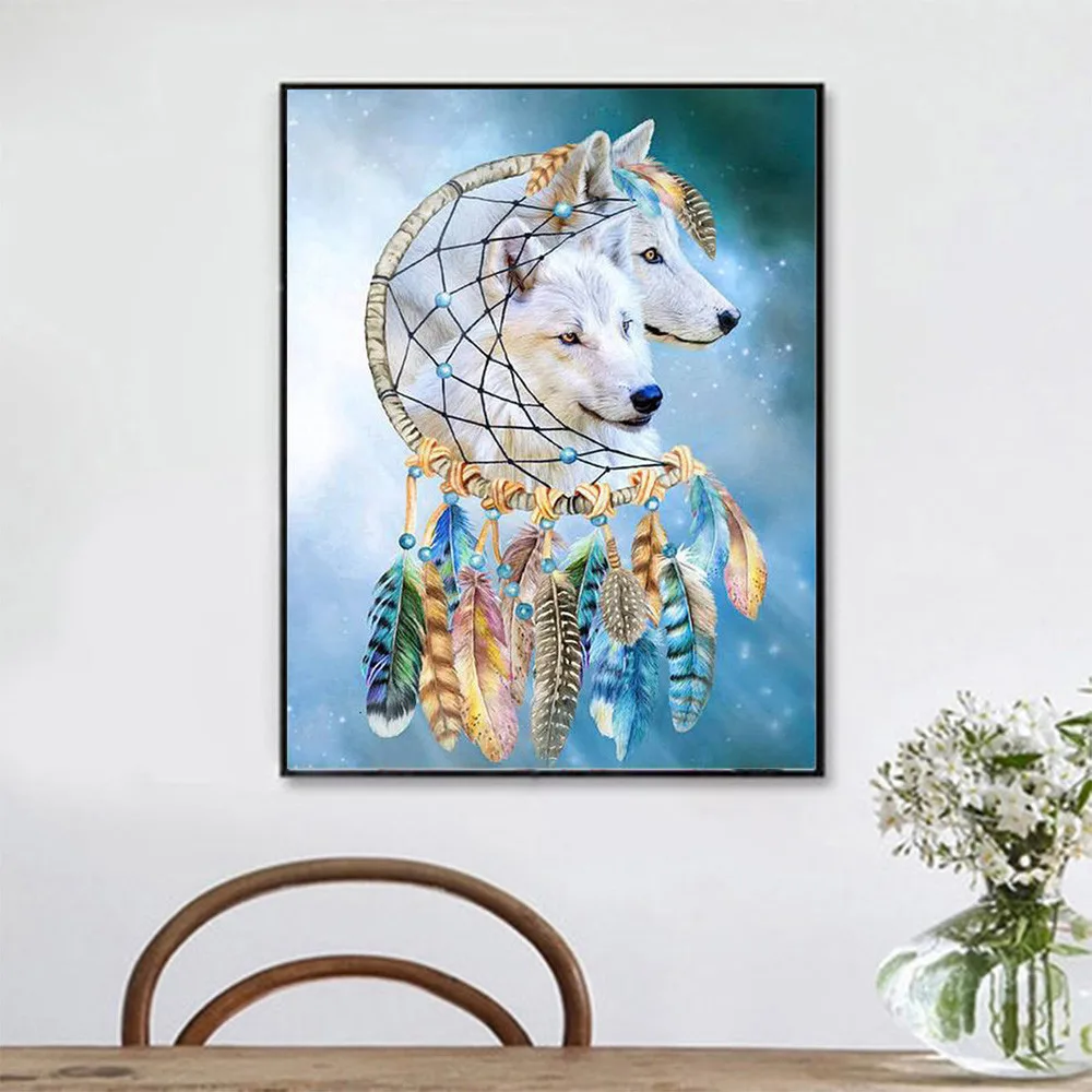 HUACAN алмазов картина животных Волк Вышивка крестом Алмазная вышивка в стиле Ловец снов; Мозаика для рукоделия подарок ручной работы