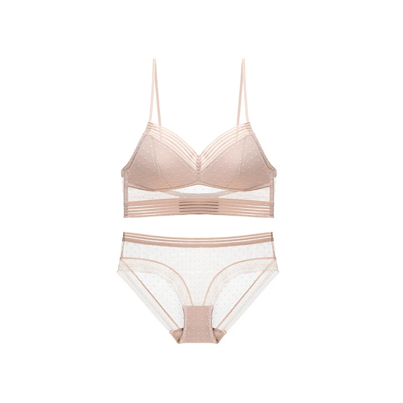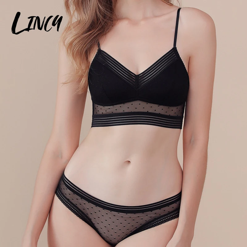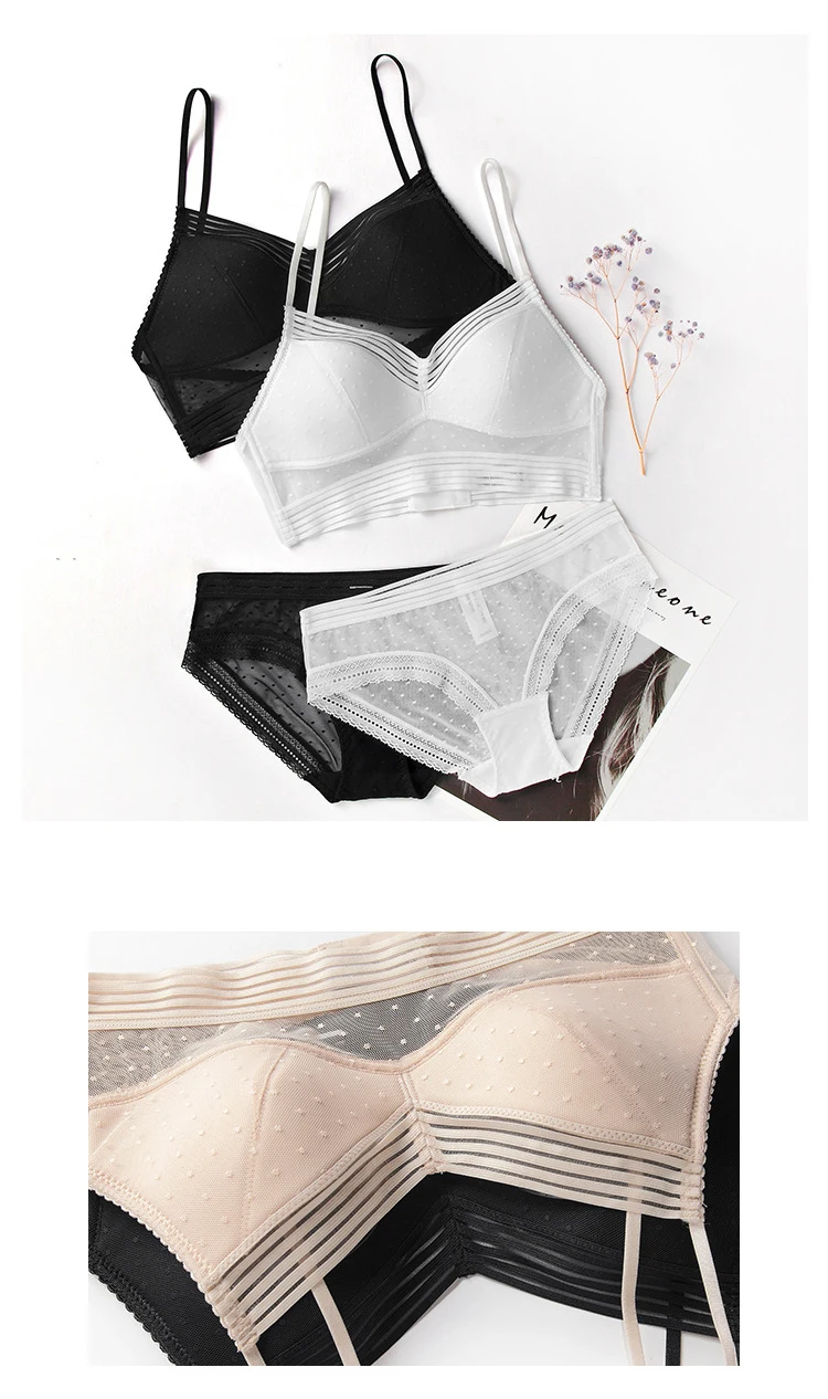 Комплект женского нижнего белья, топ с открытой спиной, бюстгальтер пуш-ап, женский бюстгальтер без косточек, сексуальный кружевной сетчатый бюстгальтер в Тонкий горошек, трусики, комплект нижнего белья