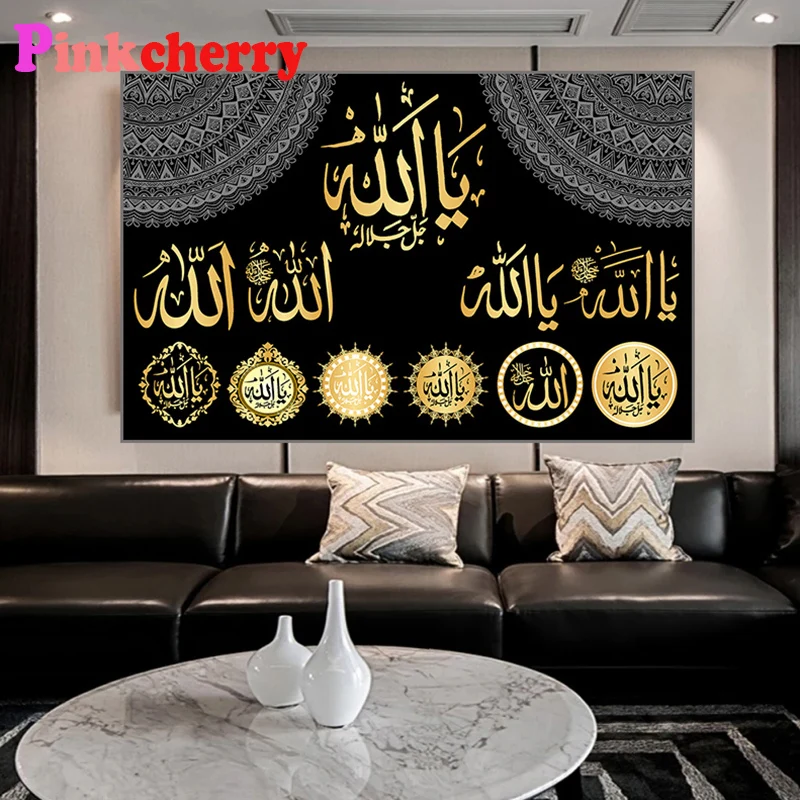 Алмазная 5D картина сделай сам, Аллах, исламский, красочные буквы, мусульманский, полный квадрат, круглый стразы, вышивка, мозаика, вышивка крестиком