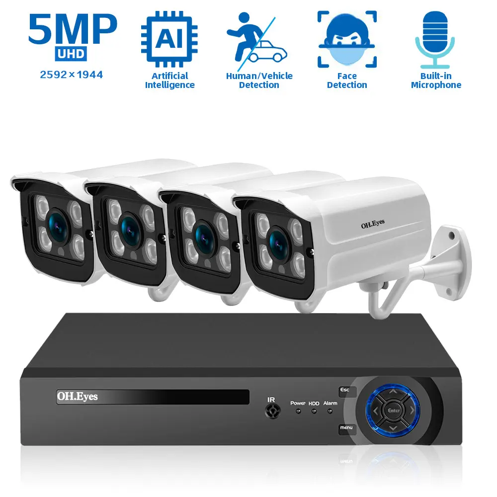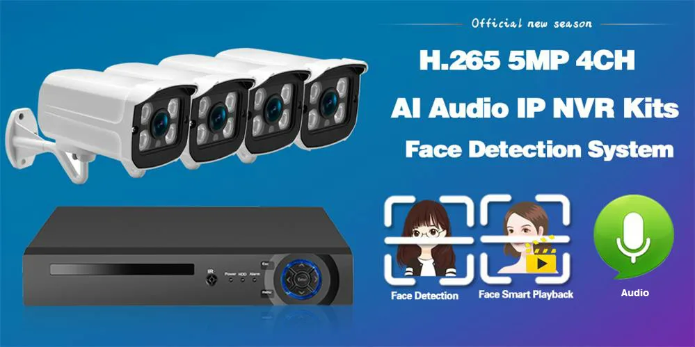 4CH 5MP 1080P POE NVR CCTV система 5MP аудио микрофон IP камера ИК наружный Водонепроницаемый P2P комплект видеонаблюдения